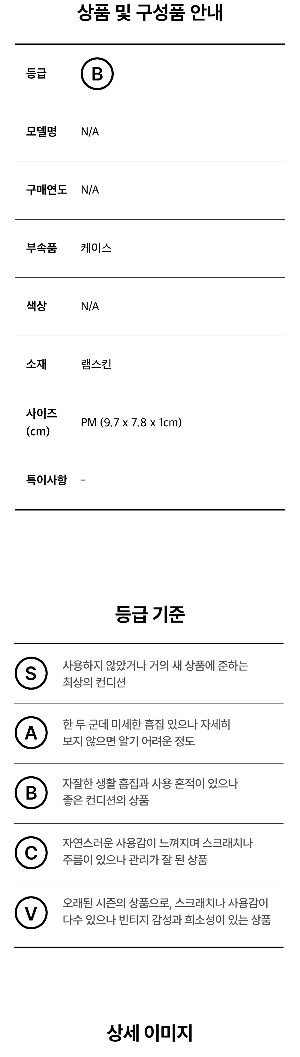 모든 상품(가죽, 의류, 잡화, 슈즈 등)은 사용자의 사용방법과 환경에 따라 변형, 변색이 될 수 있으니 반드시 취급 라벨에 표시된 관리 안내를 따르시길 권장 드립니다. 이는 정도의 차이가 있으며 과도한 체열과 땀, 습기, 빛, 마찰은 제품의 손상 및 변형을 일으킬 수 있으므로 주의하시길 바랍니다.