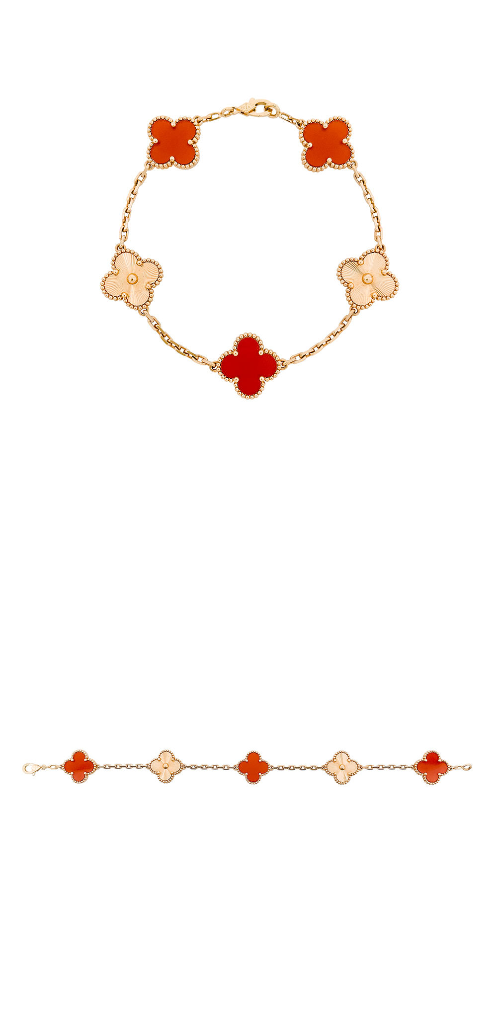 반클리프앤아펠 빈티지 알함브라 5모티브 브레이슬릿 18K 로즈골드 기요쉐/커넬리언