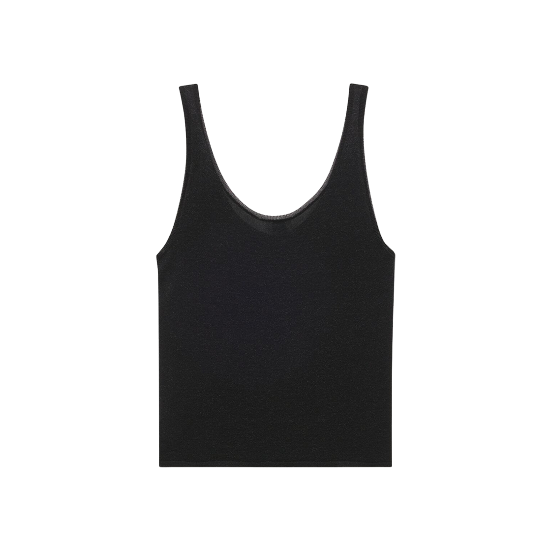 (W) Saint Laurent Tank Top in Lurex Knit Noir Brillant