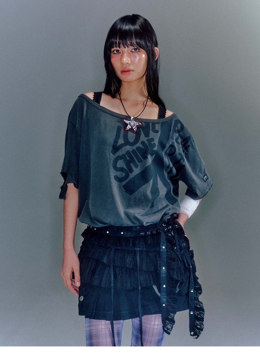 베이컨트 아카이브 디온 컷아웃 박스 티셔츠 차콜