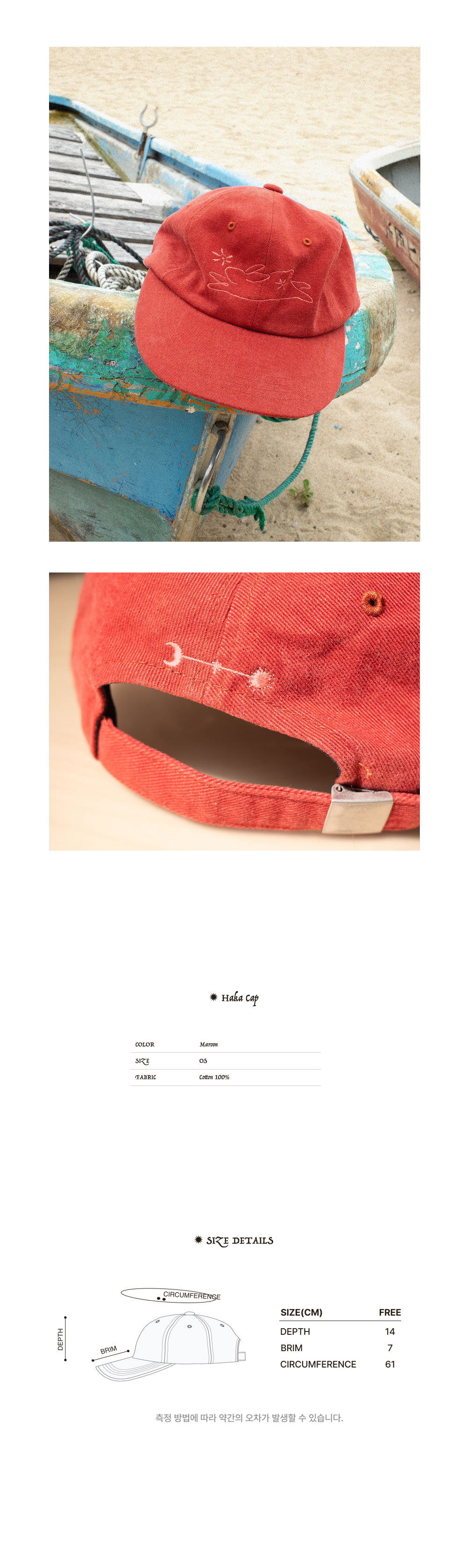 빈티지한 워싱감의 독특한 색상이 매력적인 세미 플랫캡 스타일의 모자입니다. 낮은 깊이감으로 가볍게 머리 위에 올려놓는 듯이 연출하는 실루엣입니다. - Chain embroidered logo cap - Normal washed