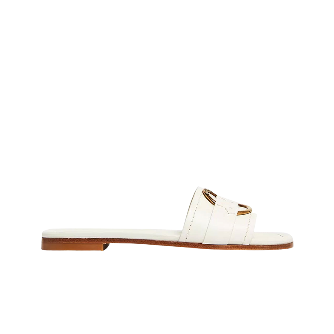 (W) 몽클레르 벨 카프 레더 로고 링 샌들 화이트 - 24SS