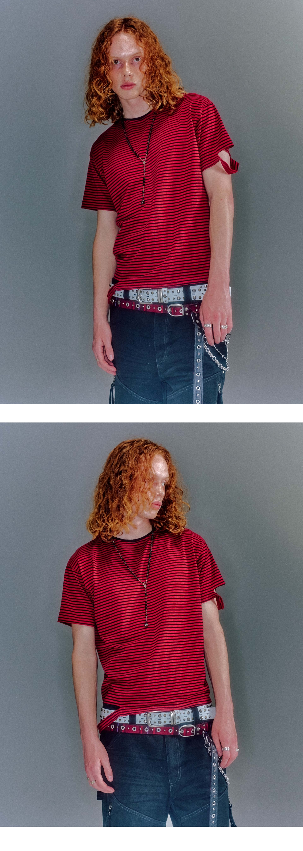 - 더티 워싱 가공된 소가죽 소재 사용 - 유니섹스로 사용할 수 있는 길이감 - 배색 더블 리벳 장식 사용 - 베이컨트 심볼 리벳 포인트 - 빈티지 무드의 도금 장식 사용
