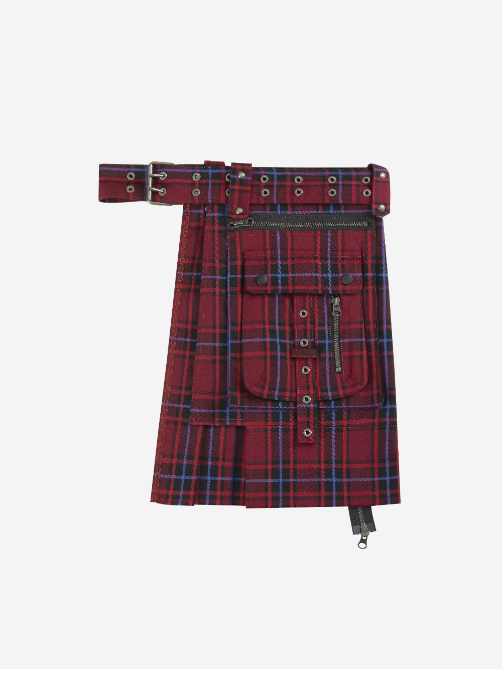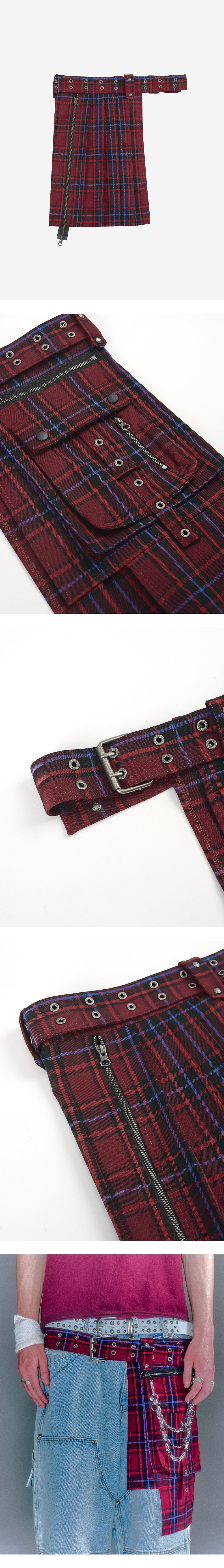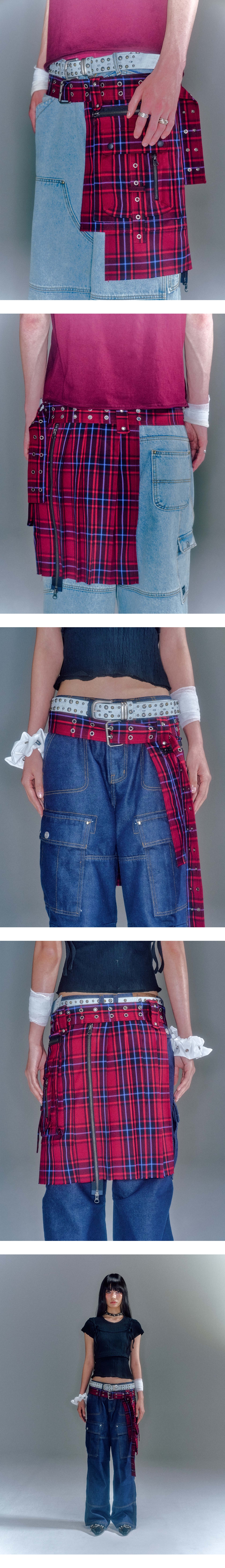 베이컨트 아카이브 바제스 레이어드 스커트 체크 레드 블루