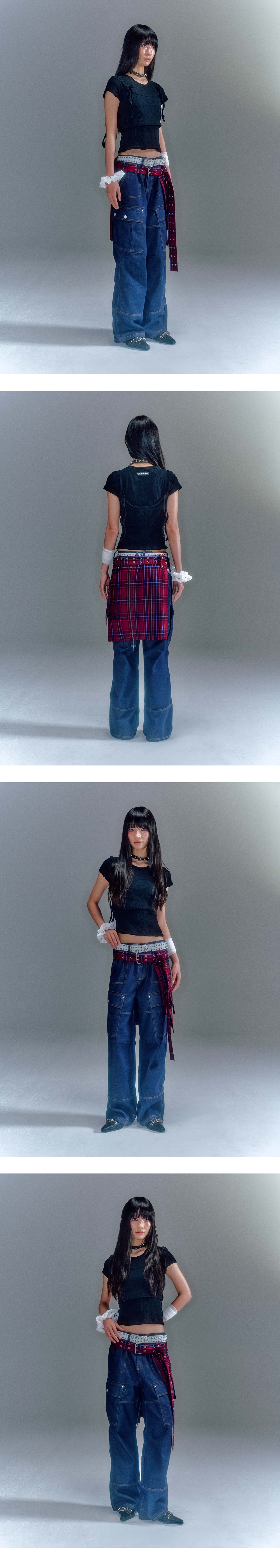 - 허리사이즈 조절로 남녀 모두 착용 가능한 스커트 레이어드 벨트 - 미디 기장으로 다양한 룩 연출 - 전면 입체 포켓과 지퍼 디테일 - 후면 플리츠 디자인 - 빈티지 무드의 엔틱도금 더블 촉 벨트와 아일렛 사용