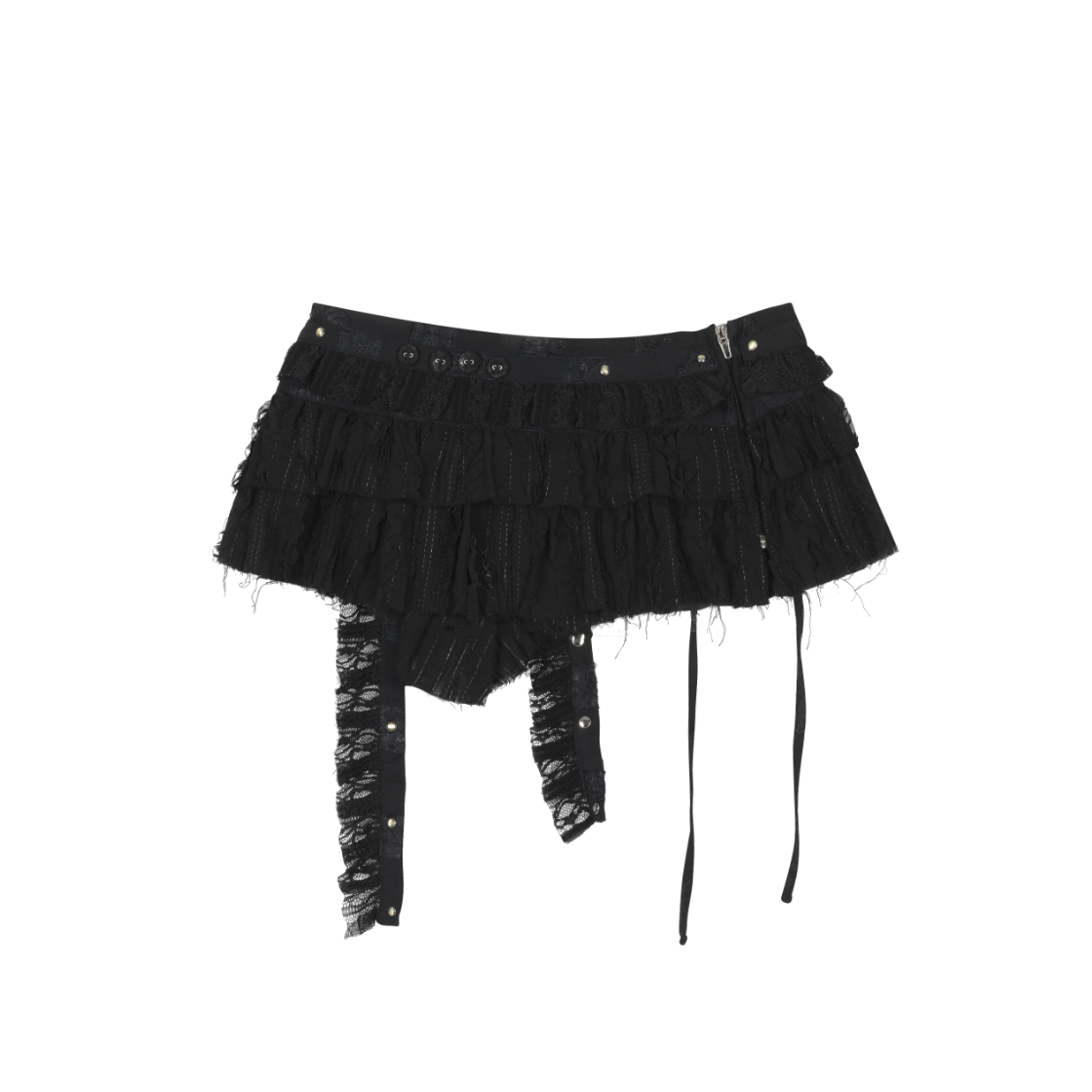 베이컨트 아카이브 릴리 레이스 레이어드 미니 스커트 블랙