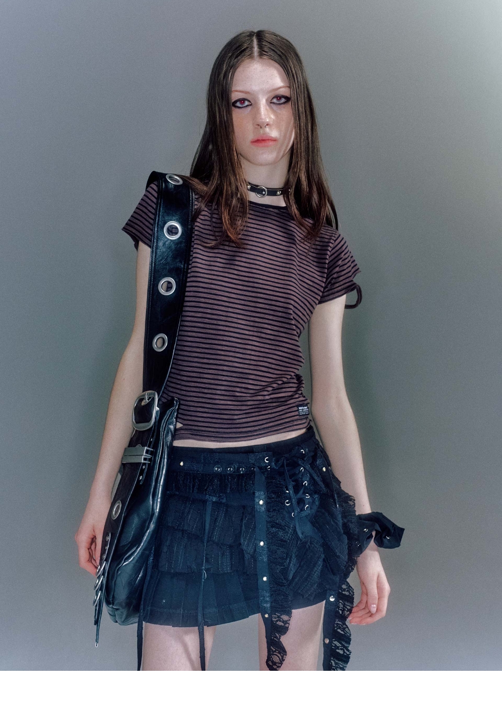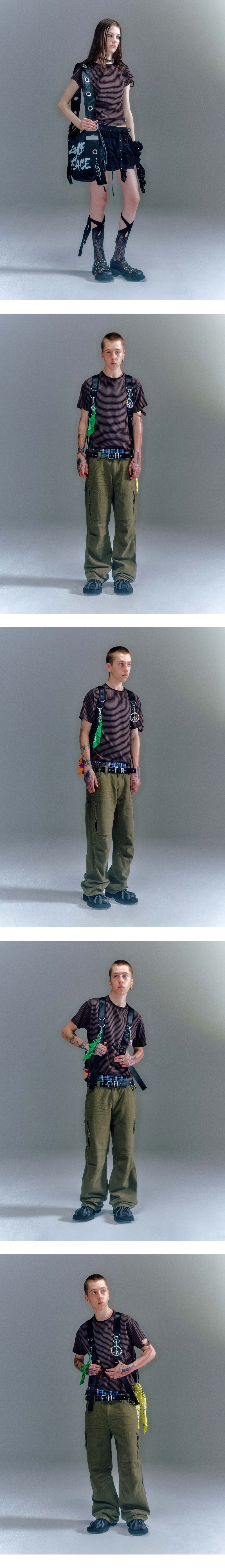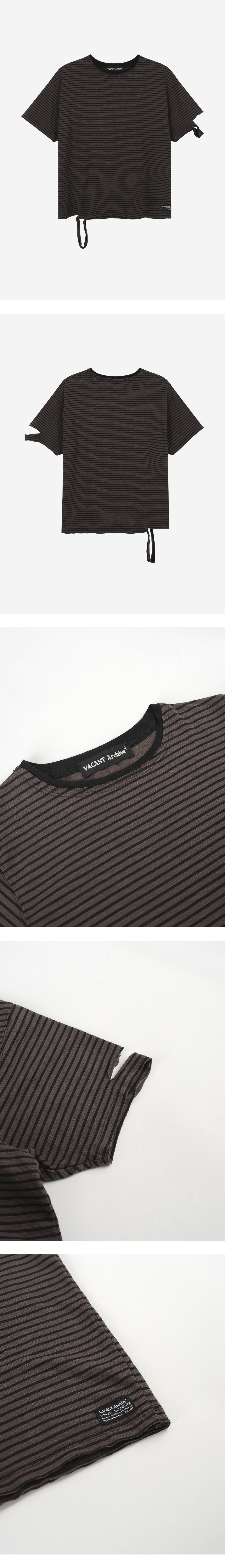 베이컨트 아카이브 오반 대미지드 스트라이프 티셔츠 브라운