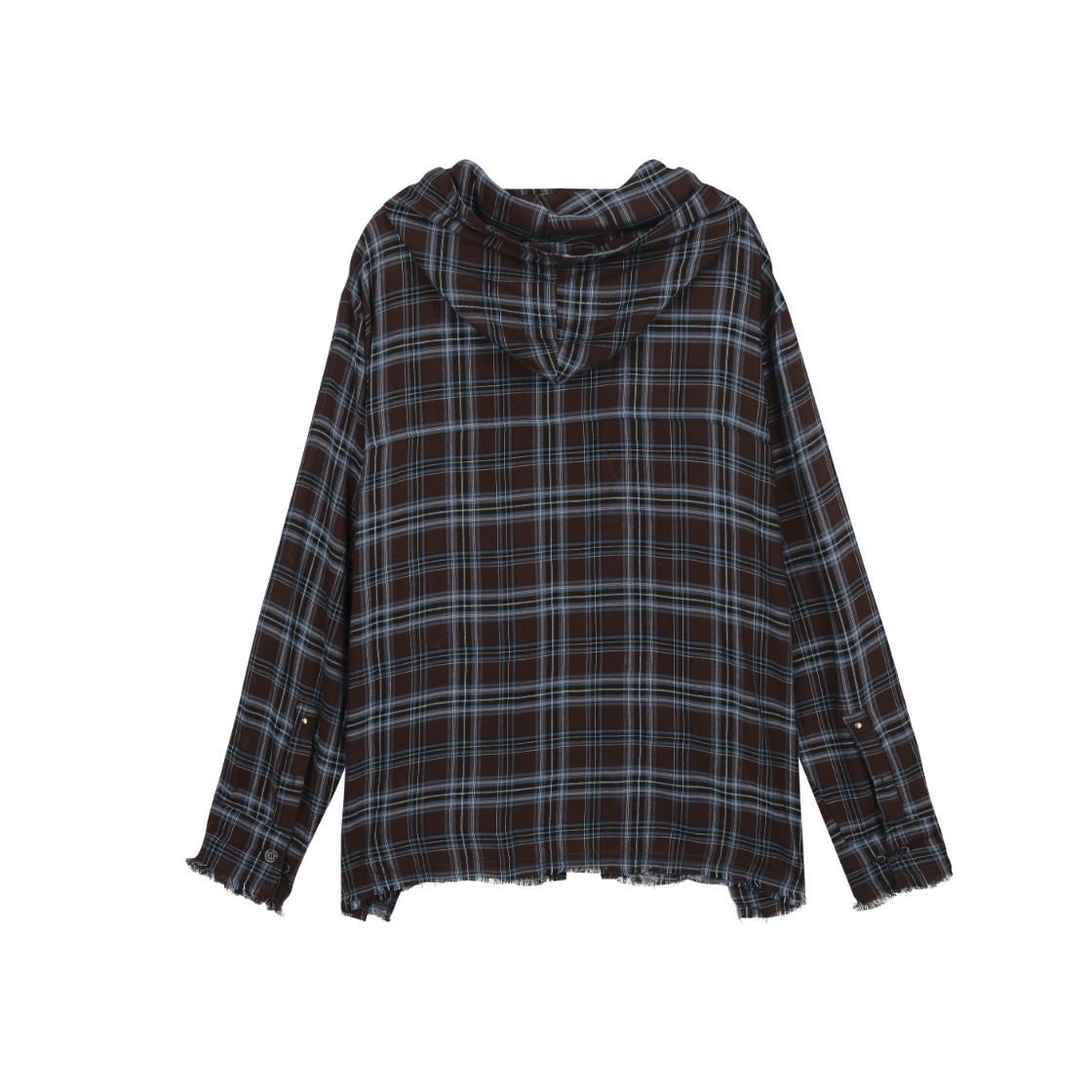 - 와이드 실루엣의 체크 후드 셔츠 - 얇은 두께감에 흐르는 실루엣 - 안쪽에 나염 가공이 들어간 소재 사용 - 내추럴한 밑단 컷팅 가공 디테일 - 베이컨트 제작 리벳 사용