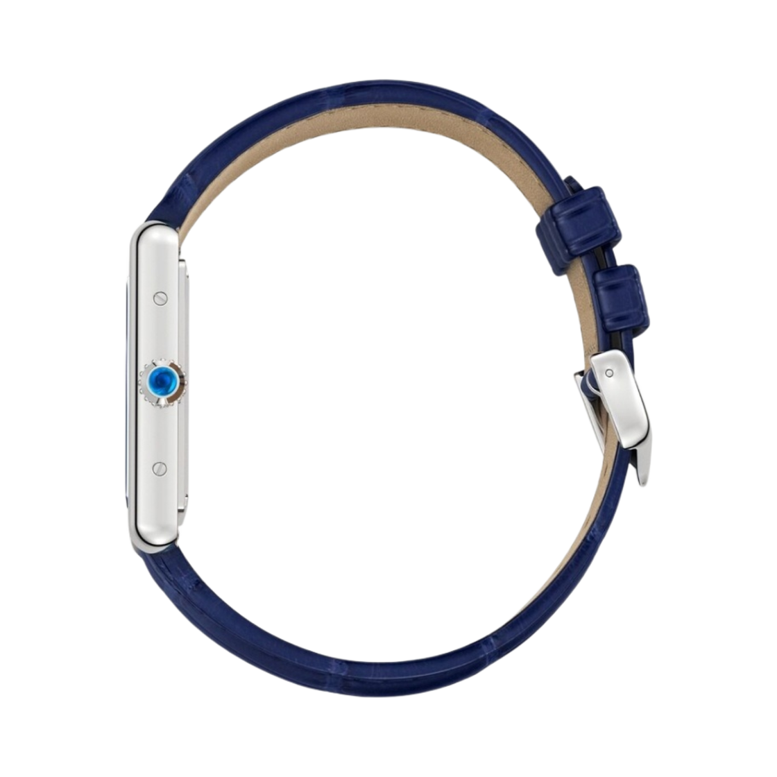 까르띠에 탱크 머스트 워치 라지 쿼츠 스틸 엘리게이터 스킨 블루