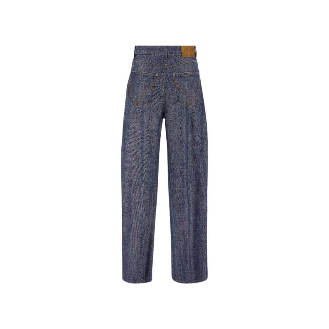 (W) Bottega Veneta Denim Jacquard Wide Leg Trousers Blue White
