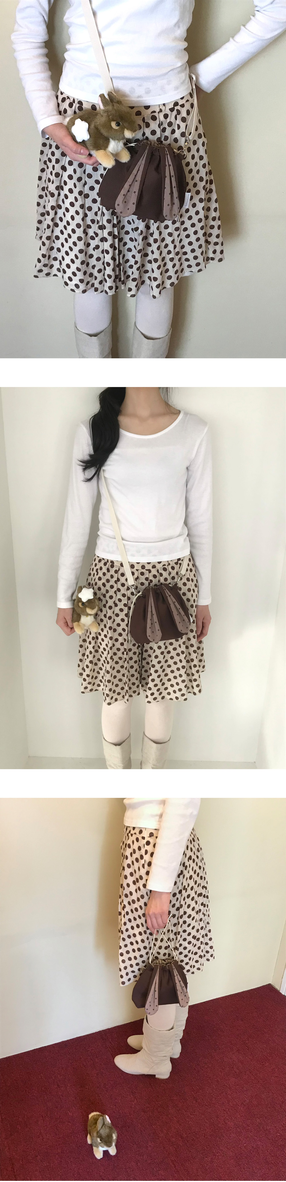 가방의 종류마다 토끼 귀의 두께감, 모양, 길이가 다를 수 있습니다.