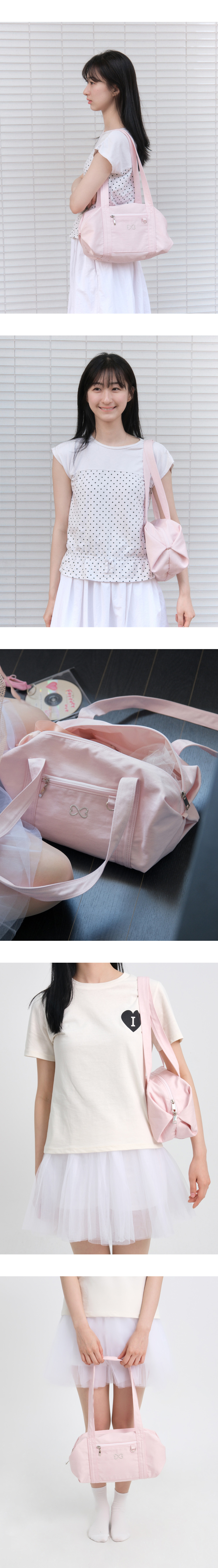 무한대 기호와 하트를 결합해 영원한 사랑이라는 메시지를 담았습니다. 핑크 원단에 반짝이는 은색 실 자수로 특별함을 더했으며, 사계절 내내 데일리로 사용하기 좋은 천 소재의 숄더백입니다. 가방 옆면은 리본과 나비를 연상시키는 디자인으로 포인트를 주었고, 넓은 폭으로 수납력이 뛰어나 실용성까지 갖췄습니다.