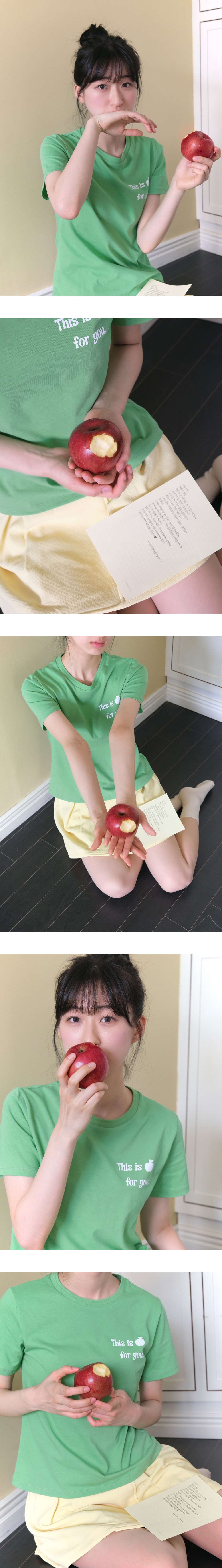 사과하고 싶은 사람이 있나요? 아이썸머리 사과 티셔츠를 입어보세요 ♥ This is for you ... 진심 어린 사과를 한다면, 상대방이 사과를 받아줄 거예요! 스탠다드 핏으로 허리라인은 슬림하게 잡아주고, 밑단은 여유롭게 제작되었습니다. 팔 둘레를 넉넉하게 제작하여 편안하고 부담 없이 착용할 수 있습니다. 20수 바이오워싱 면 원단을 사용해 부드러운 착용감과 내구성을 높였습니다.