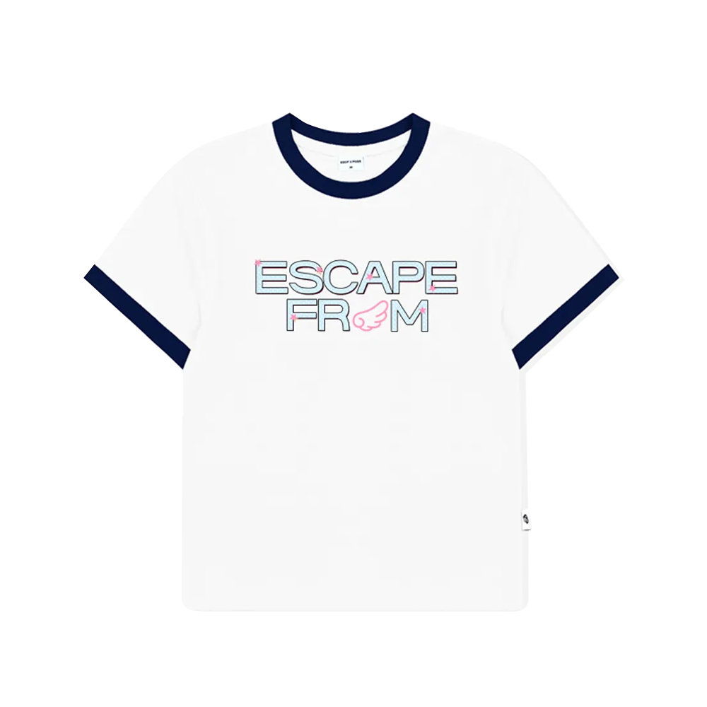Escapefrom From Angel Print Ringer Short Sleeve T-Shirt Navy