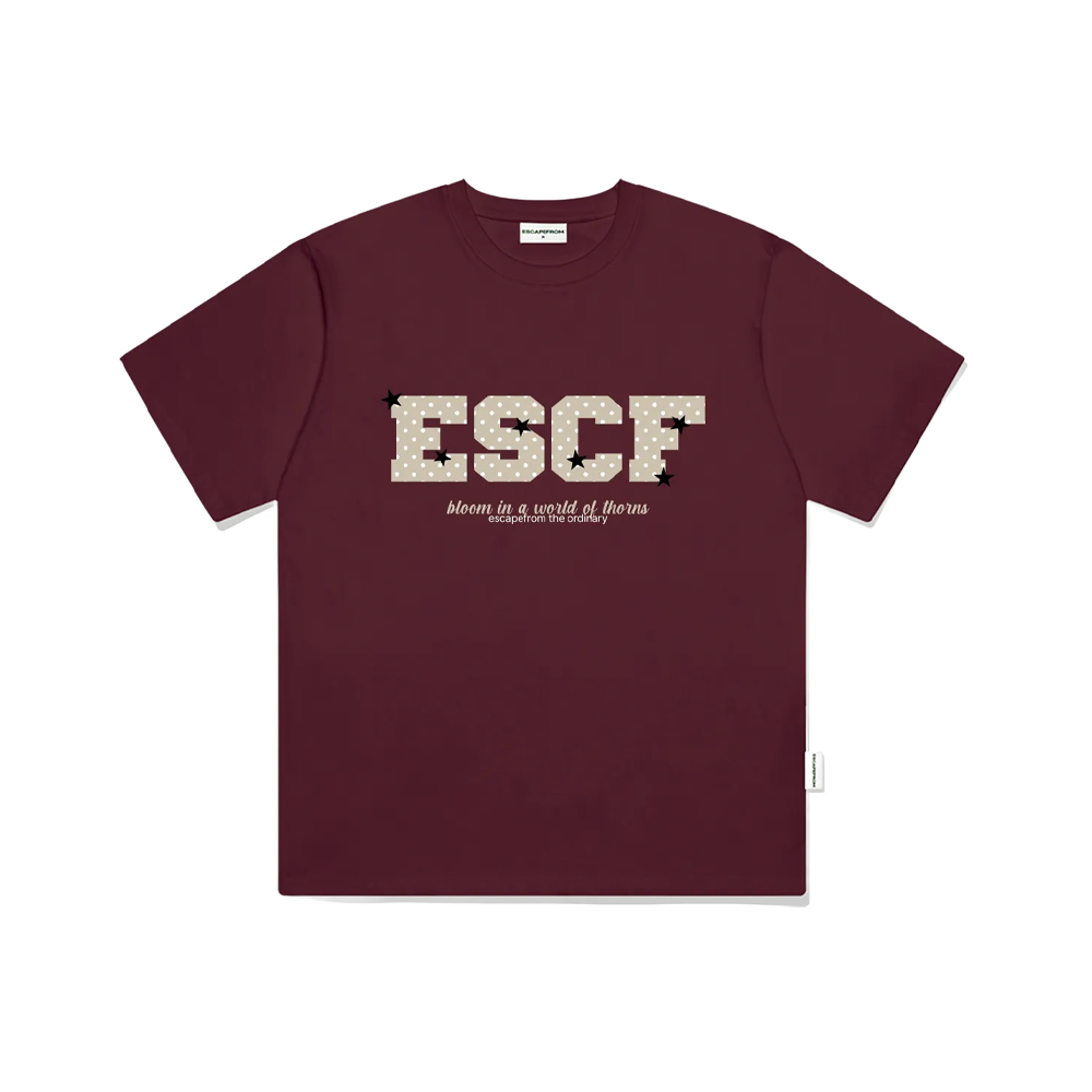 이스케이프프롬 도트 스타 블룸 프린트 오버핏 반팔티 버건디