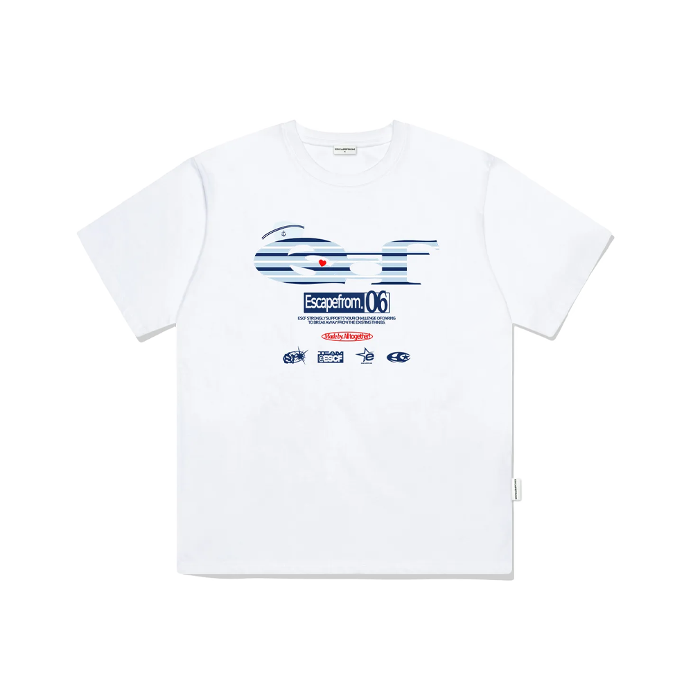 Escapefrom Marine ESCF Logo Collage Print Overfit Short Sleeve T-Shirt White
