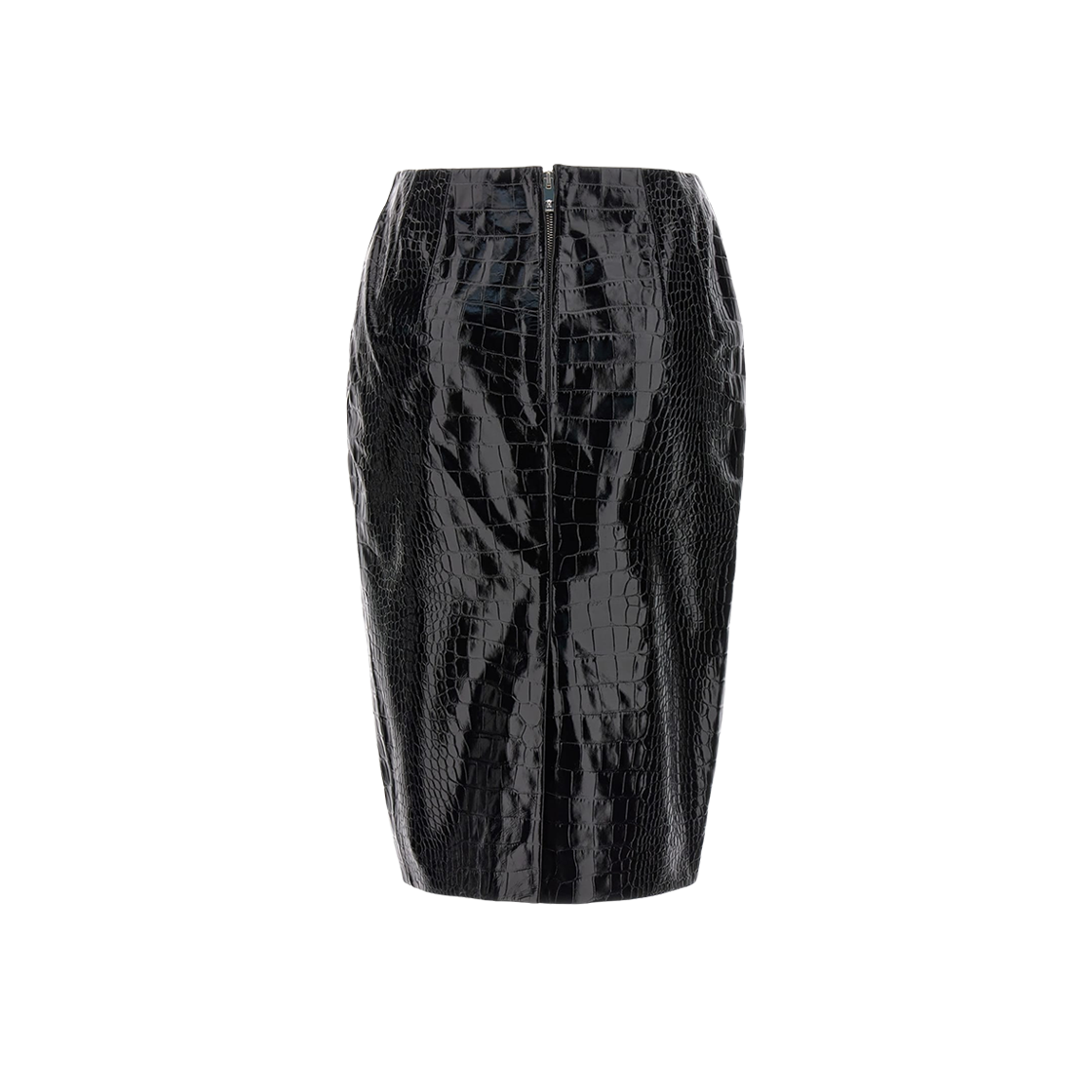 (W) Versace Leather Skirt with Crocodile Effect Black