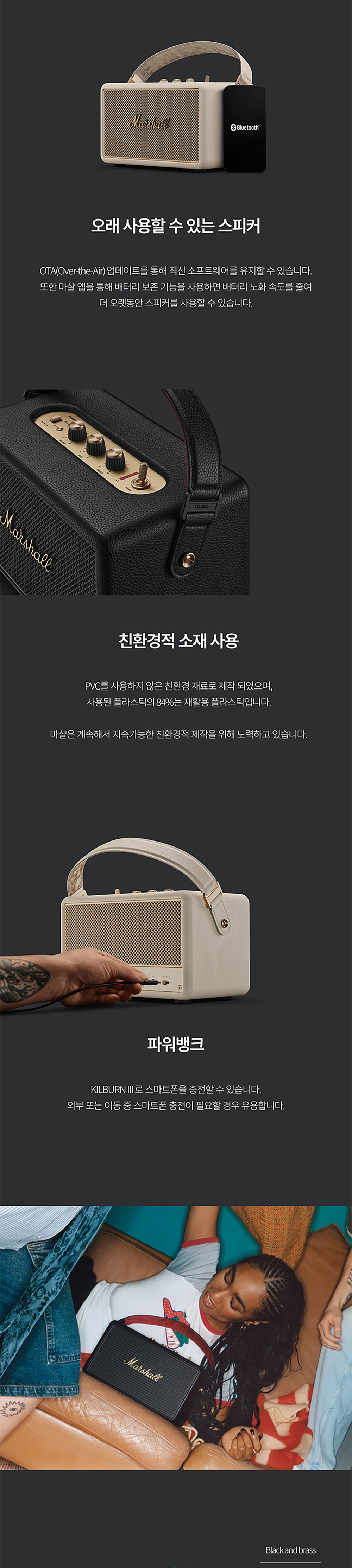 강력한 360° 사운드와 최대 50시간 재생! IP54 방수·방진, 스마트폰 충전 기능까지 갖춘 마샬 킬번3. 아날로그 컨트롤과 마샬 시그니처 사운드로 실내외 어디서나 깊고 풍부한 음악을 즐겨보세요.