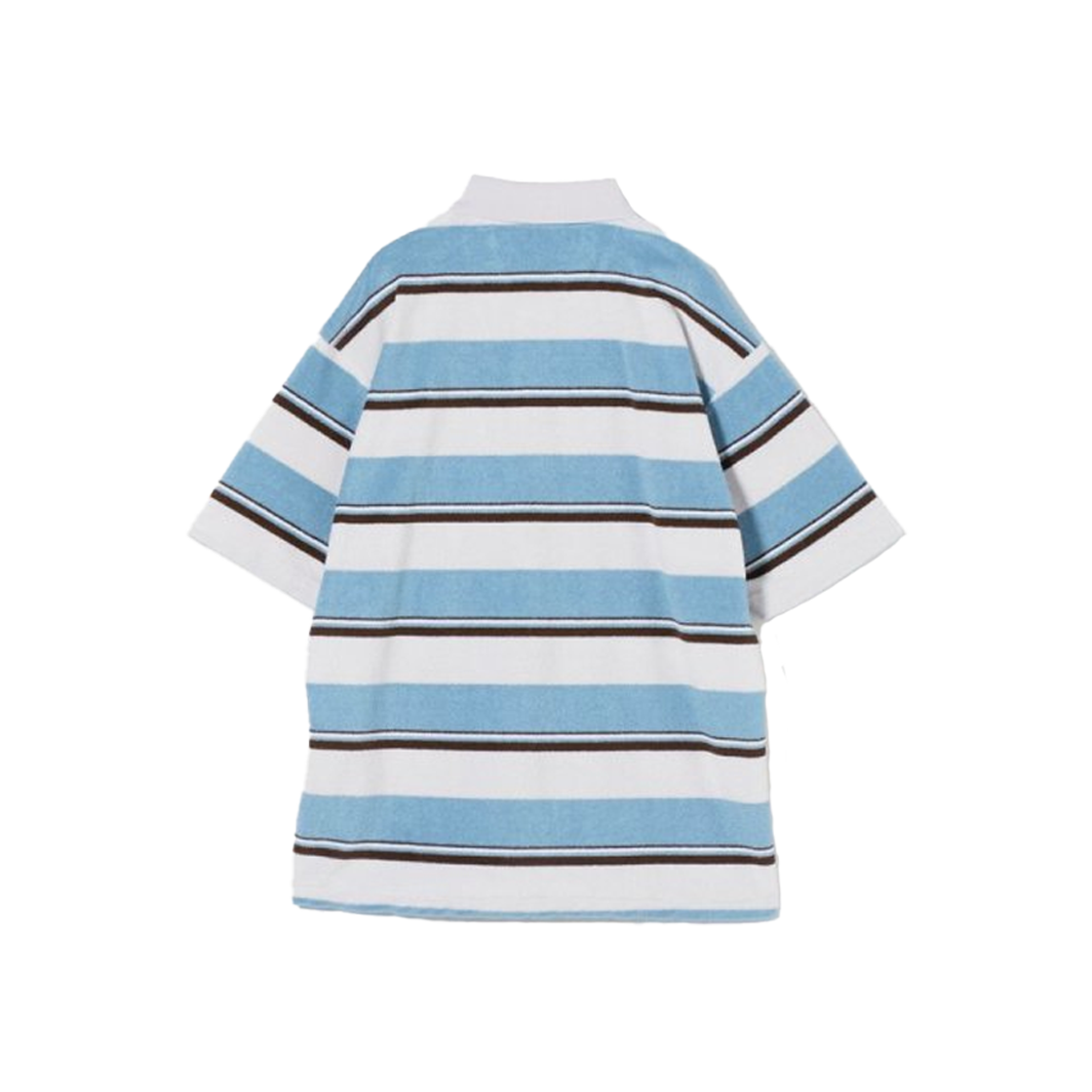 스트라이프 패턴이 매력적인 캘리포니아 제너럴 스토어 오가닉 코튼 파일 보더 폴로 셔츠 라이트 블루입니다. - 오버한 실루엣 - 유니섹스 - 왼쪽 가슴에 샵 로고 자수