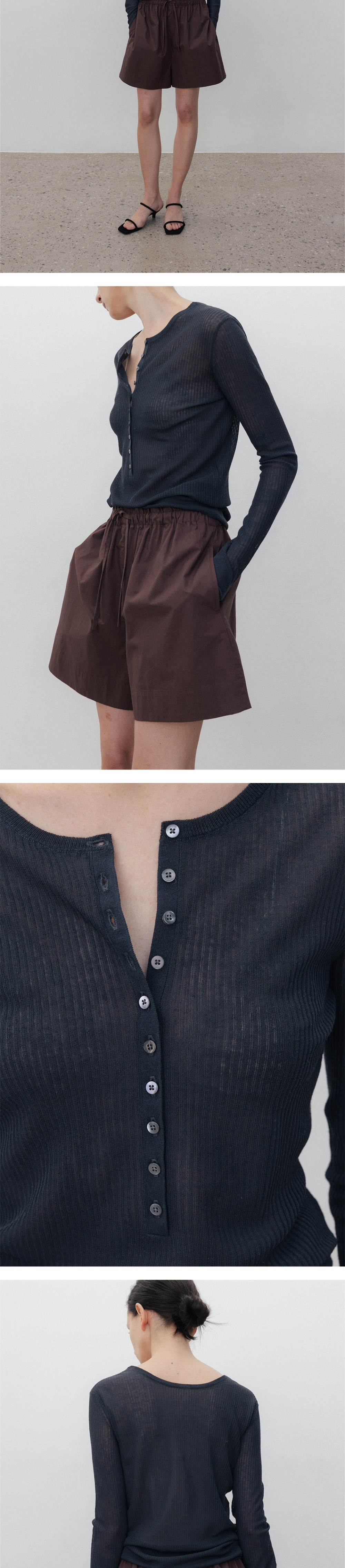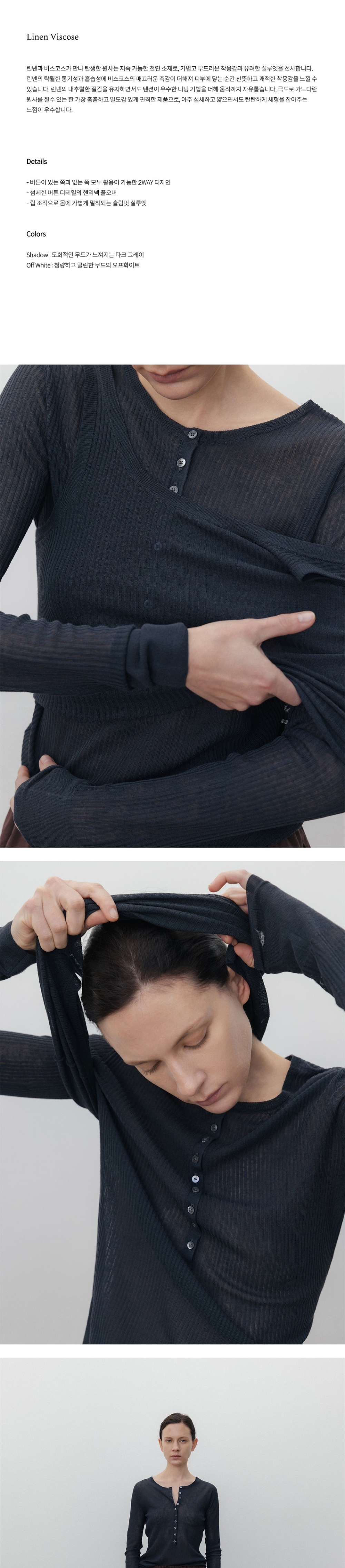 우마뭉 린넨 비스코스 리브드 헨리넥 풀오버 쉐도우