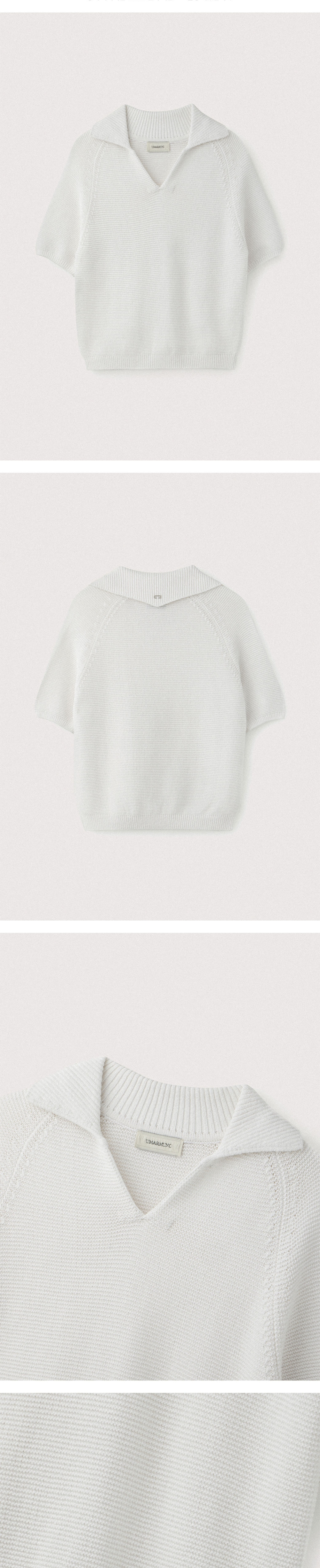 UMARMUNG Korean Paper Yarn Collared Pullover_White