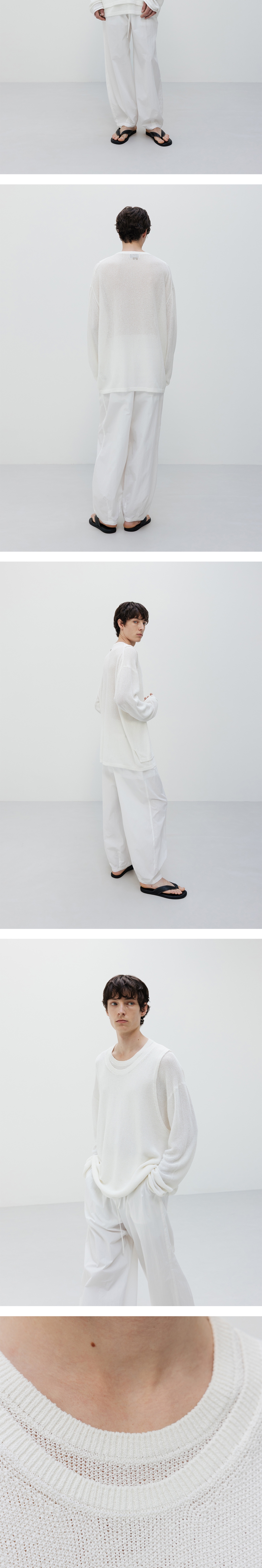 UMARMUNG Japanese Paper Yarn Vest Layered Pullover_Bone