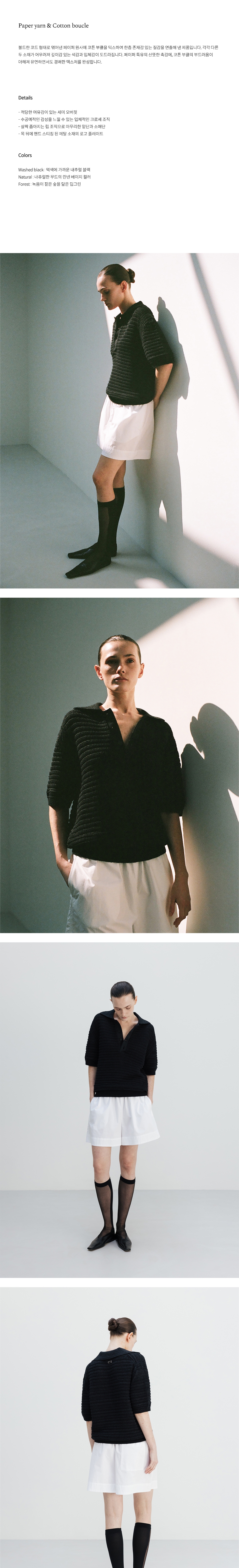 우마뭉 페이퍼 & 부클 크로셰 칼라 풀오버 워시드 블랙