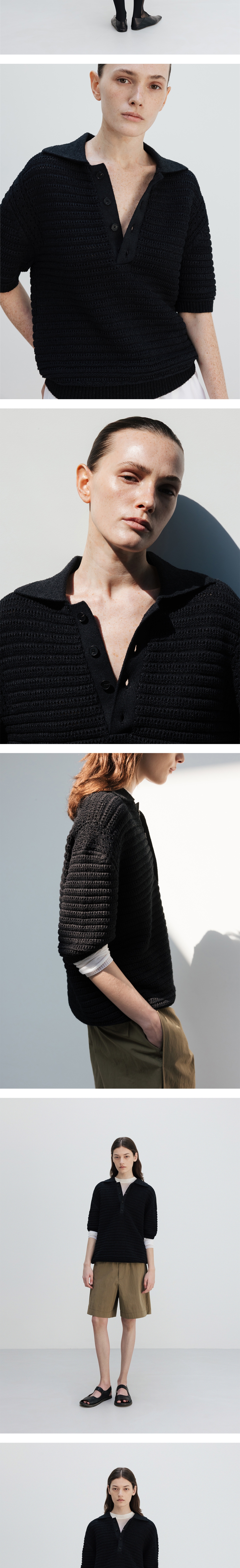 UMARMUNG Paper & Boucle Crochet Collared Pullover_Washed Black