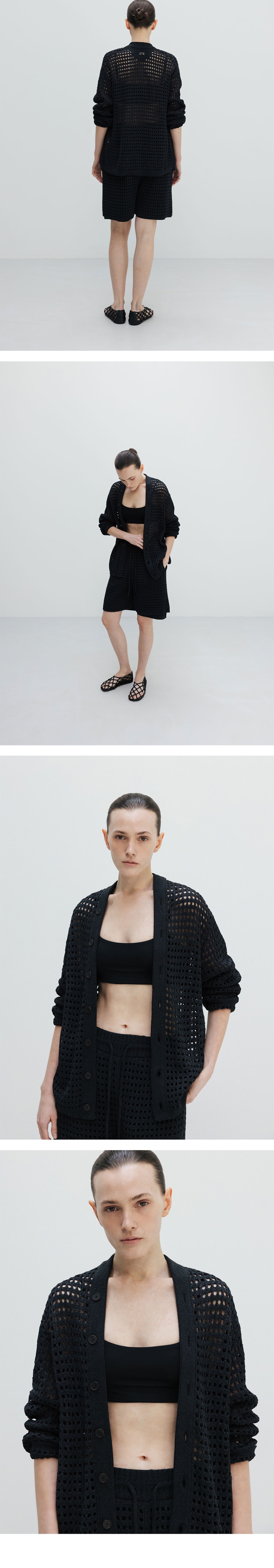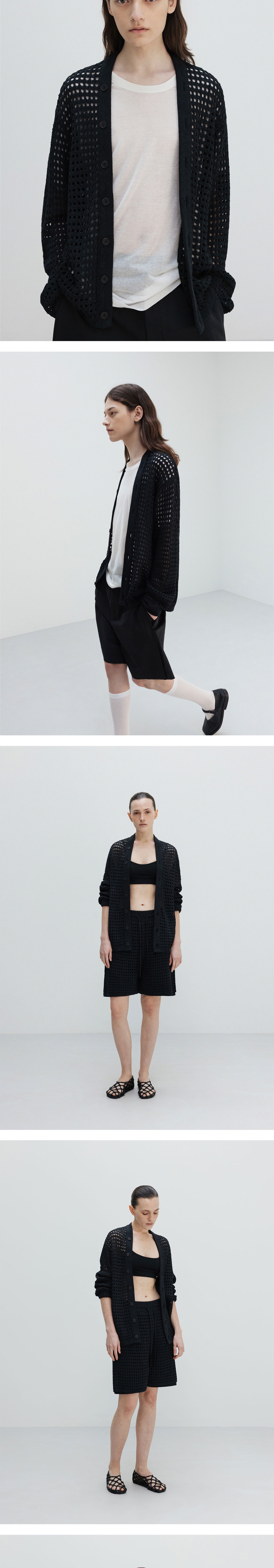 우마뭉 재패니즈 페이퍼 얀 크로셰 가디건 워시드 블랙