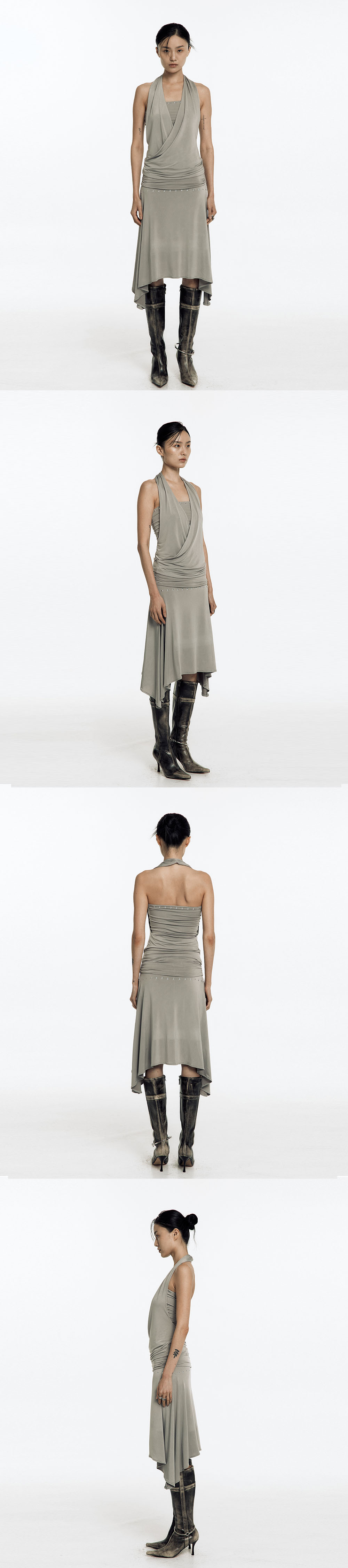 Kashiko Stud Drape Flare Skirt Warm Gray