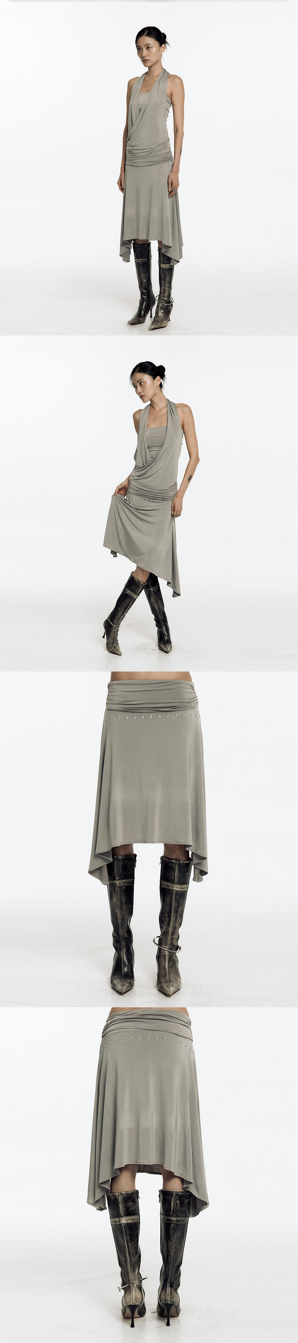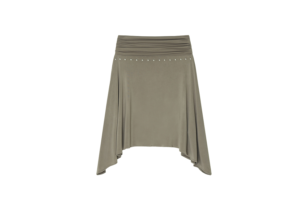 카시코 스터드 드레이프 플레어 스커트 웜그레이