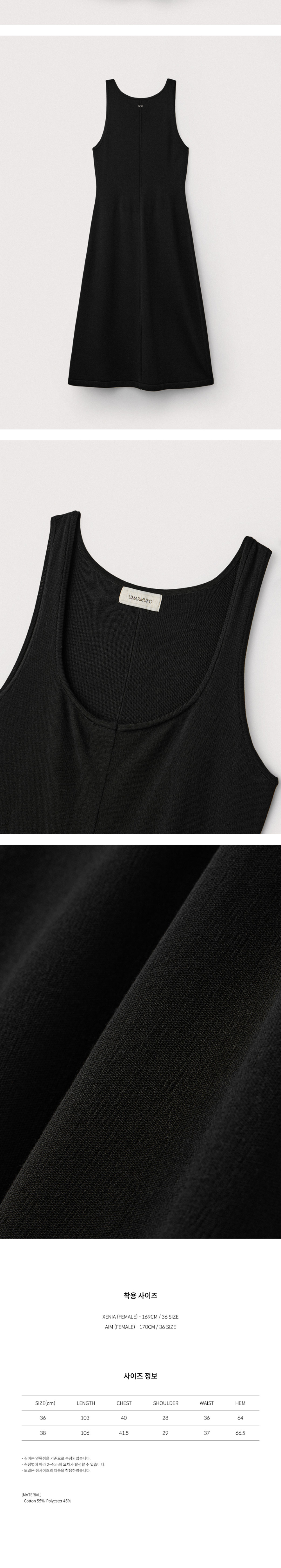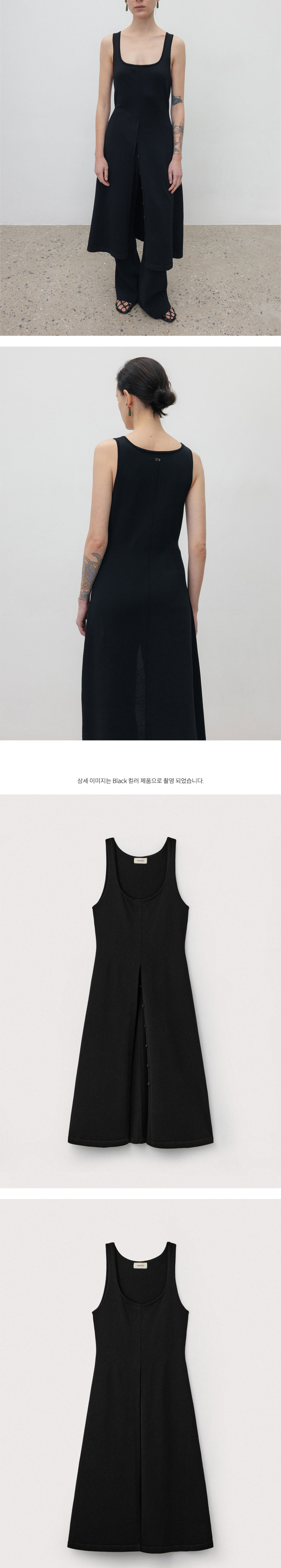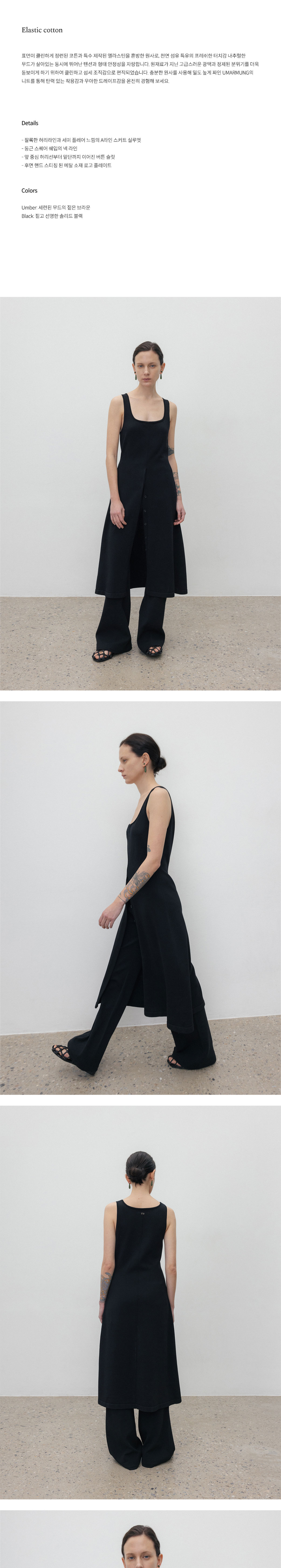 우마뭉 엘라스틱 코튼 버튼 슬릿 드레스 블랙