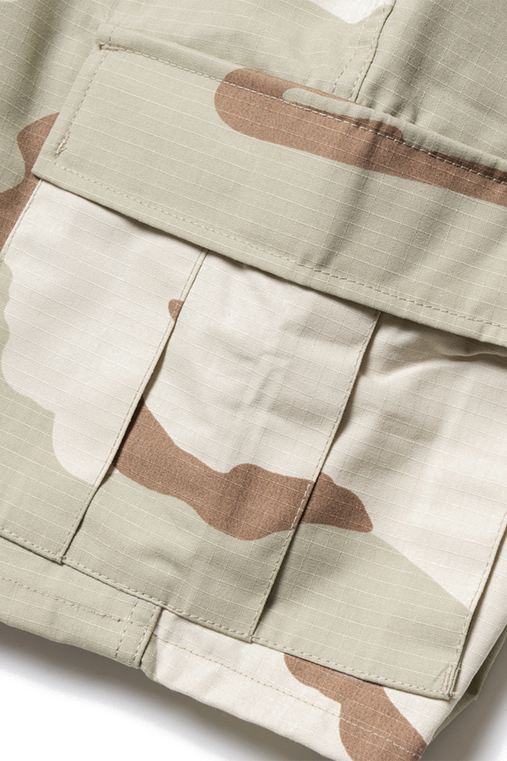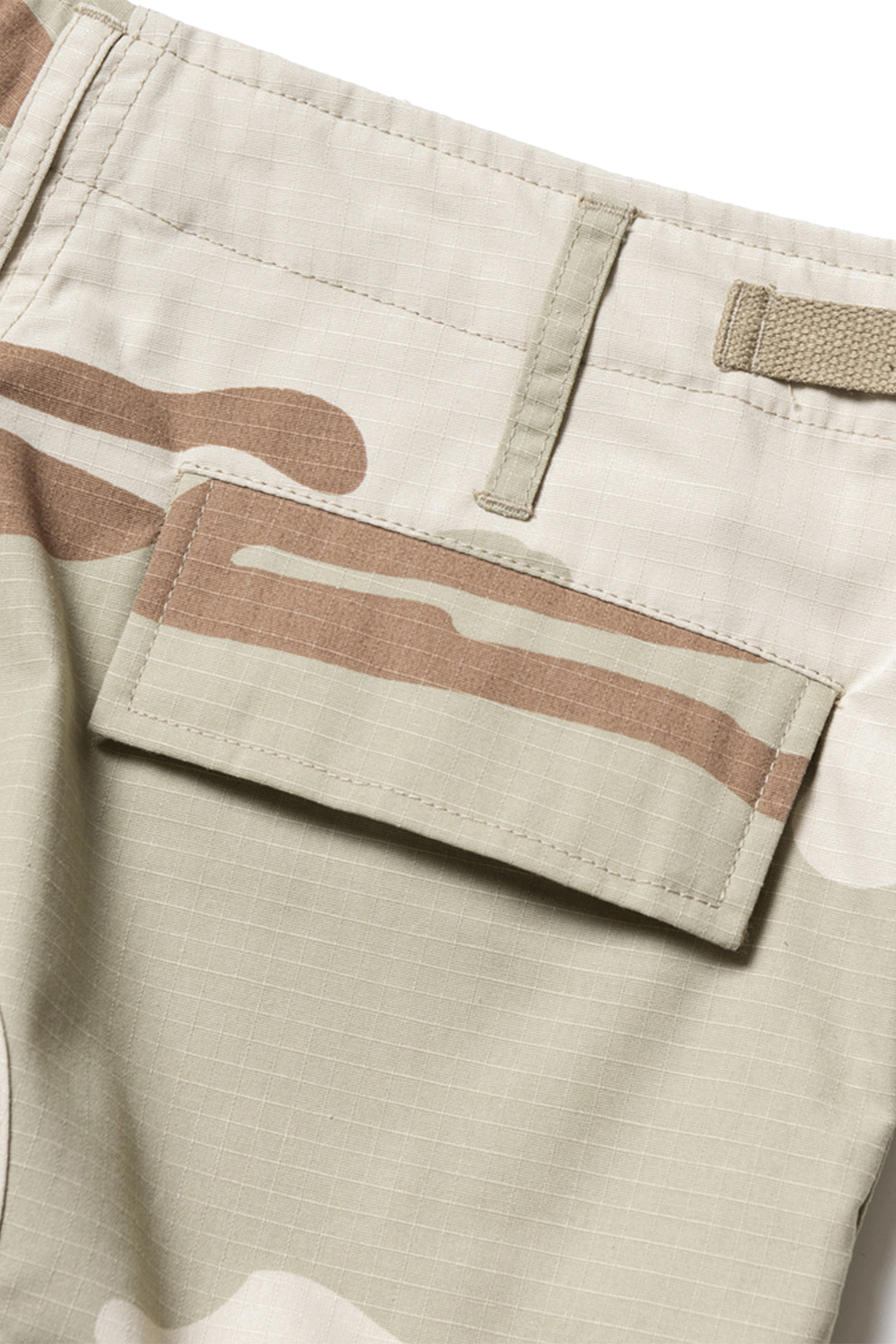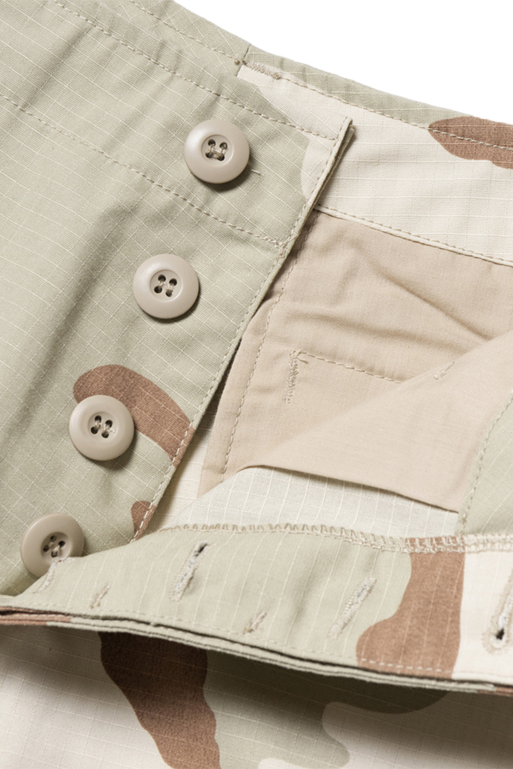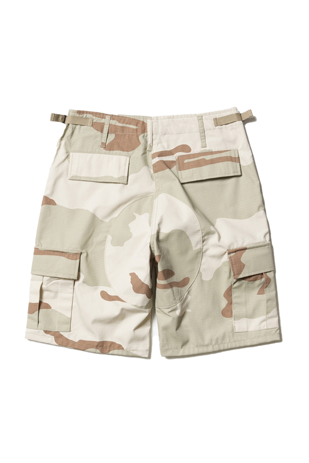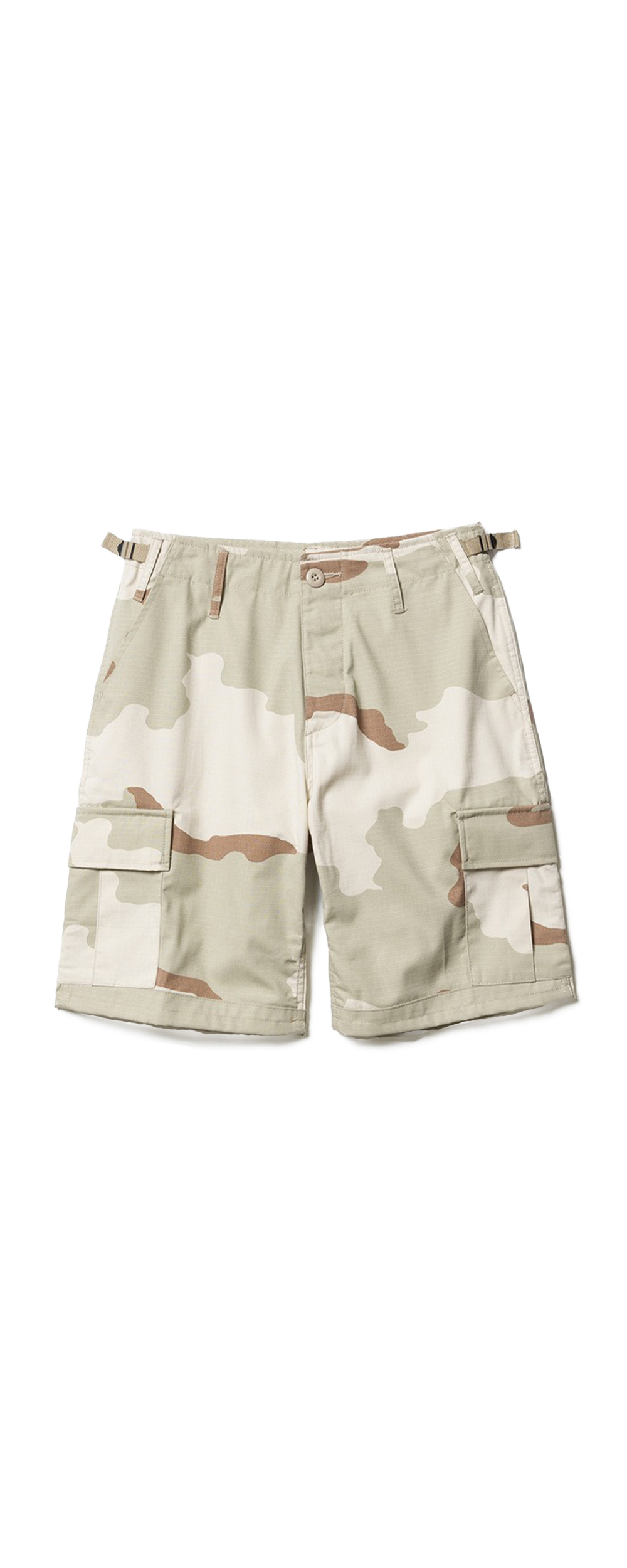 BDU Ripstop Short Pants - 3C Desert 'BDU'는 'Battle Dress Uniform' 약어입니다. 1960년대 초반 트로피칼 퍼티그 팬츠의 영향을 받은 EDRL 팬츠를 1980년대 채용 한 컴뱃 팬츠입니다. 밑위의 실루엣이 넉넉하며, 허벅지 부터 밑단까지 슬림하게 제작된 것이 특징입니다. 베트남전부터 사용된 립스탑 소재로 제작하여 견고하면서도 통기성이 좋아, 사계절 착용 가능한 아이템입니다. 프론트는 버튼 플라이로 구성되어 있으며, 허리부분의 사이즈 조절 장치로 1-2cm정도 사이즈를 작게 조절 가능합니다. 카고를 포함한 6포켓으로 다방면에 활용 가능한 아이템입니다. 착용시 'XS'이 '28-30', 'S'가 '30-32', 'M'이 '33-34' 'L'이 '35'입니다. * 해당 제품은 BDU Ripstop Pants 반바지 버전이기에 S/M 과 달리 L/XL 상품은 제품 하단에 플리츠 디테일을 가지고 있습니다.