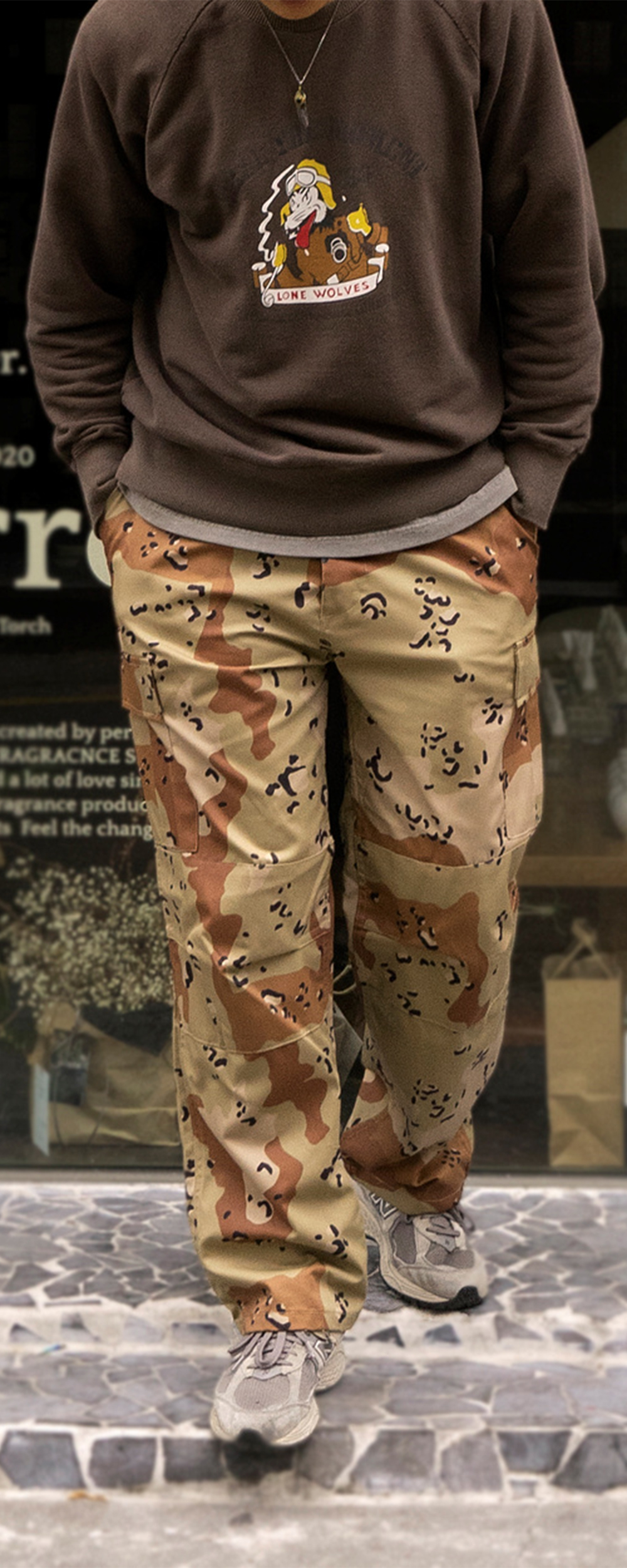YMCL KY BDU Pants - Choco Chip Desert 'BDU'는 'Battle Dress Uniform' 약어입니다. 1960년대 초반 트로피칼 퍼티그 팬츠의 영향을 받은, EDRL 팬츠를 1980년대 채용 한 컴뱃 팬츠입니다. 밑위의 실루엣이 넉넉하며, 허벅지 부터 밑단까지 슬림하게 제작 되었습니다. 프론트는 버튼 플라이로 구성되어 있으며, 허리는 사이즈 어드저스터로 2-3cm 가량 작게 조절 가능합니다. 밑단 역시 스트랩이 있어서, 팬츠의 실루엣을 다양하게 조절 가능하며, 카코를 포함한 6포켓입니다. 착용시 'S'가 '30-32', 'M'이 '33-34' 'L'가 '35'입니다. * Polyester 65% / Cotton 35 % * YMCL KY 는 합리적인 가격으로 제품을 제공하기 위하여 별도의 포장이 존재하지 않습니다. * 빛에 의한 제품의 색감 차이가 존재 할 수 있습니다. * Made in China
