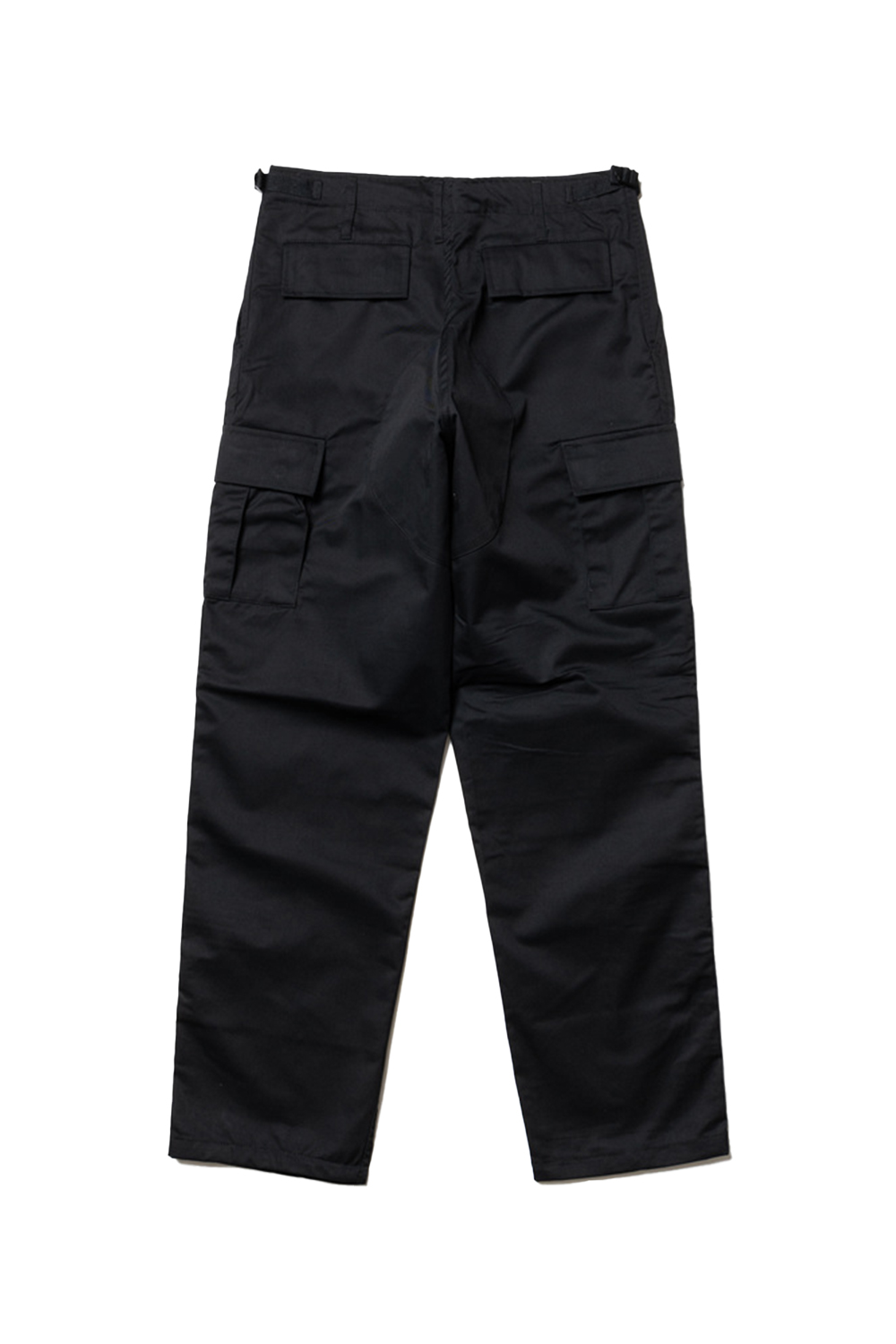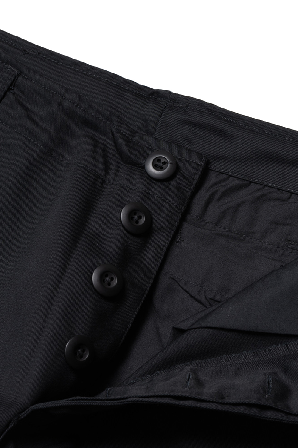 YMCL KY BDU Pants - Black 'BDU'는 'Battle Dress Uniform' 약어입니다. 1960년대 초반 트로피칼 퍼티그 팬츠의 영향을 받은, EDRL 팬츠를 1980년대 채용 한 컴뱃 팬츠입니다. 밑위의 실루엣이 넉넉하며, 허벅지 부터 밑단까지 슬림하게 제작 되었습니다. 프론트는 버튼 플라이로 구성되어 있으며, 허리는 사이즈 어드저스터로 2-3cm 가량 작게 조절 가능합니다. 밑단 역시 스트랩이 있어서, 팬츠의 실루엣을 다양하게 조절 가능하며, 카코를 포함한 6포켓입니다. 착용시 'S'가 '30-32', 'M'이 '33-34' 'L'가 '35'입니다. * Polyester 65% / Cotton 35 % * YMCL KY 는 합리적인 가격으로 제품을 제공하기 위하여 별도의 포장이 존재하지 않습니다. * 빛에 의한 제품의 색감 차이가 존재 할 수 있습니다. * Made in China