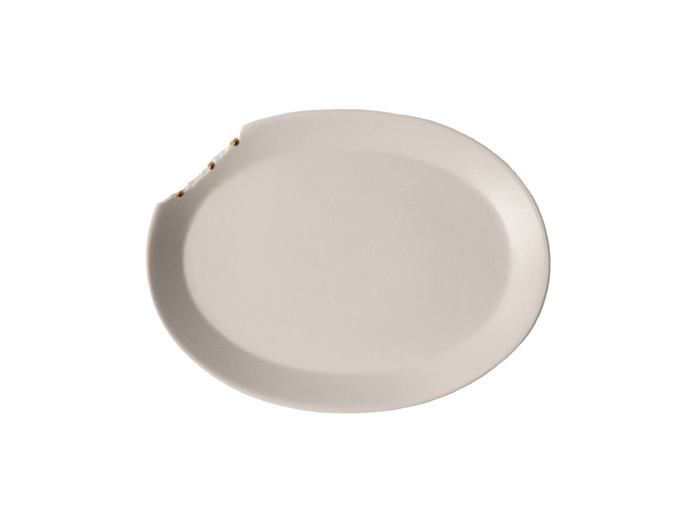크기 21 x 16 x H 2 cm 제작방식 Hand made 소재 Ceramic, Gold or Silver 이상호 작가는 한국의 미를 상징하는 '비정형'에서 오는 아름다움을 주제로, 동양과 서양, 전통과 현대, 구상과 추상, 현대미술과 디자인 등 이분법적인 경계에서 도예만이 가질 수 있는 물성을 극대화한 작업을 보여주는 작가다. 조선시대 백자기법 중 하나인 ‘면치기 기법’ 의 재해석에서 시작한 < 피스 시리즈 > 는 흙의 면을 깎아내면서 만들어지는 비정형의 면에서 발견한 흙의 원초적이면서도 순수한 형태를 바탕으로 제작한 작가만의 독창적인 시리즈다. < 피스 시리즈 > 는 조선시대의 생활방식에서 만들어진 도자기 형태의 재현이 아닌 현대의 건축 공간 과 라이프 스타일에 어울리는 모던한 형태와 사이즈로 제작되어 일상 속에서 예술로서의 도자기로 제안한다.
