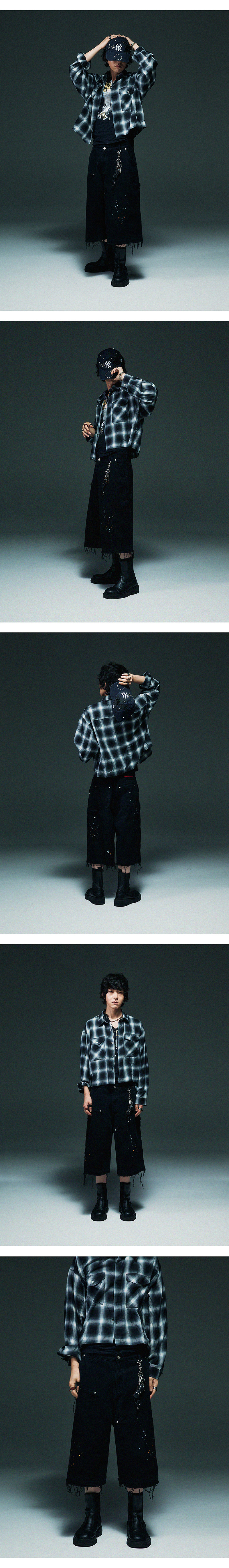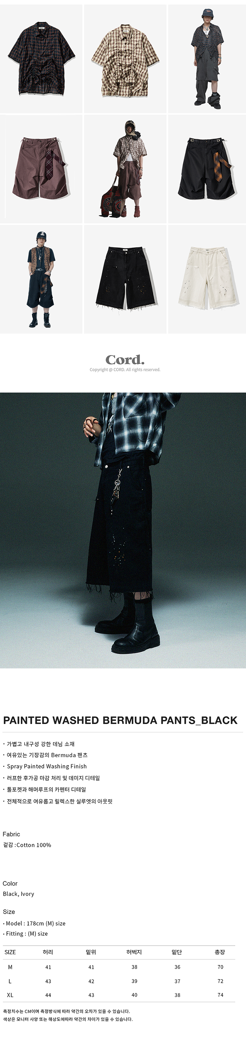 코드 페인티드 워시드 버뮤다 팬츠 블랙