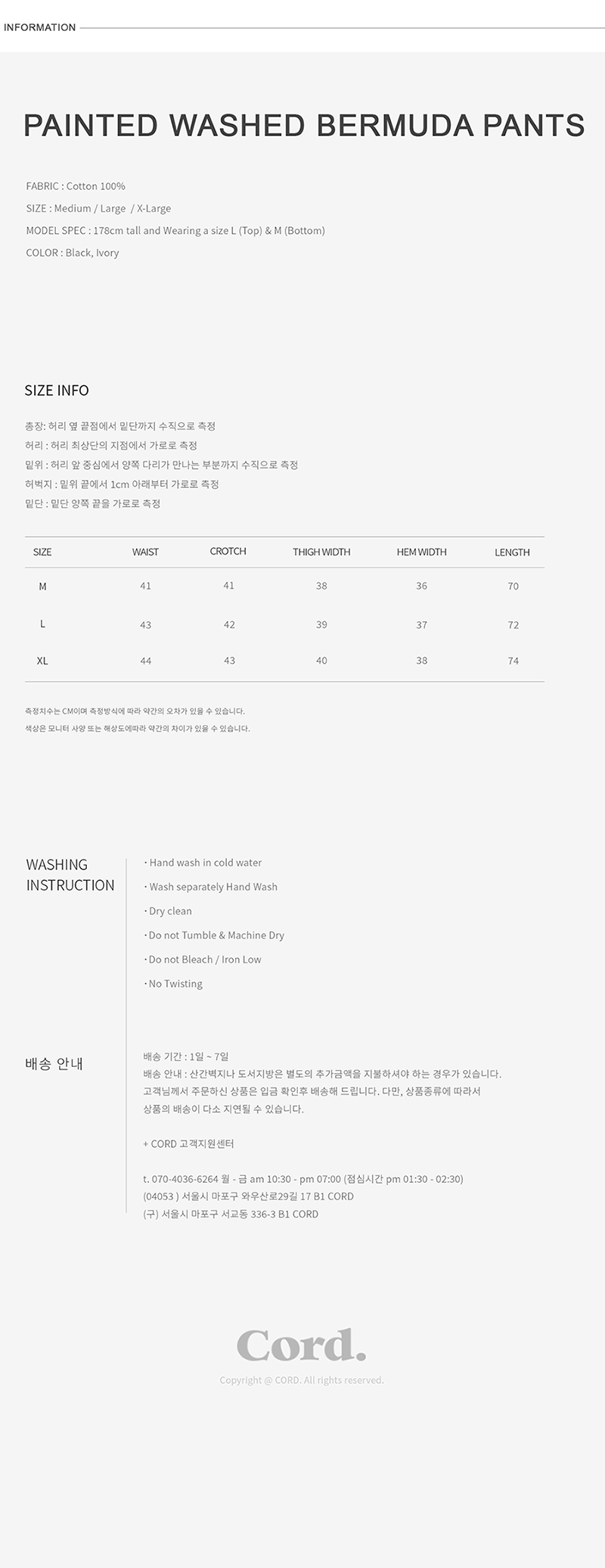 코드 페인티드 워시드 버뮤다 팬츠 아이보리
