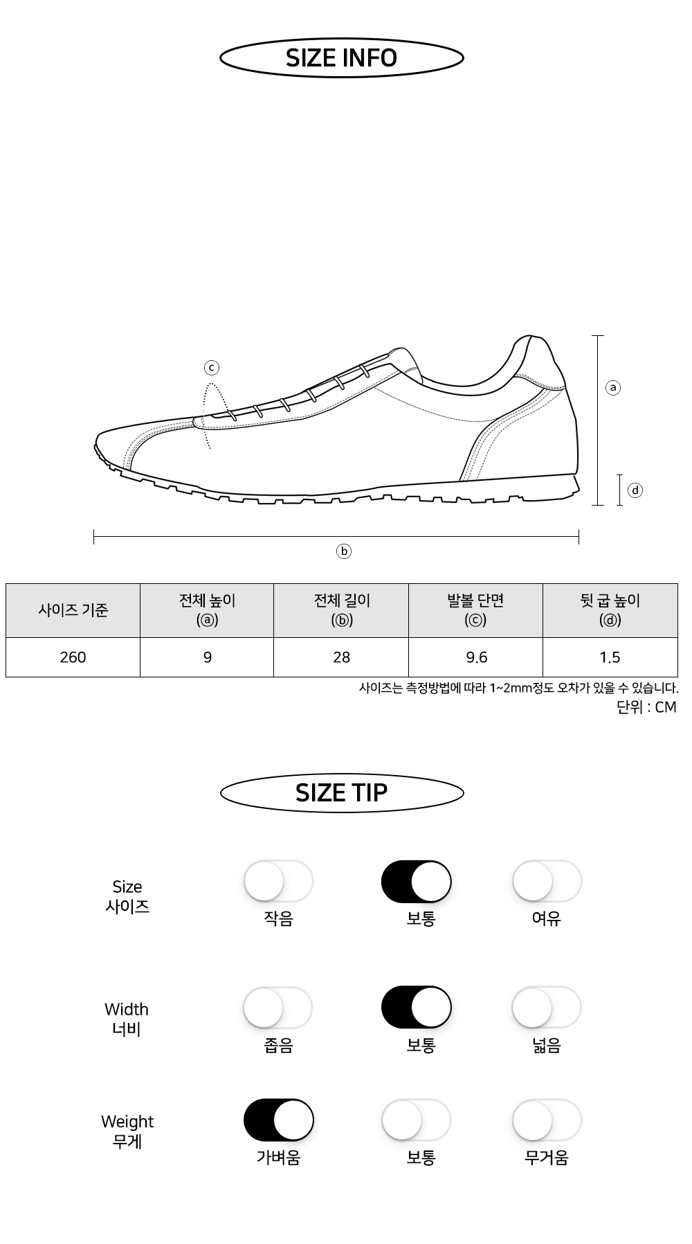 레트로 트레이닝 슈즈와 축구화 디자인에서 영감을 받아 탄생한 플랫한 실루엣의 스니커즈로, 뒤축을 접어 뮬 형태로도 착용할 수 있는 유니크한 구조를 갖추고 있습니다. 부드럽고 가벼운 천연가죽으로 제작되어 유연하고 편안한 착화감을 제공합니다. 또한, 비브람솔을 적용해 내구성과 접지력이 뛰어나며, 여분의 슈레이스와 탈부착 가능한 텅 장식이 함께 제공됩니다. * 펠레 제품은 표준 사이즈와 동일하게 제작 되었습니다. 260 사이즈 기준 정사이즈를 추천드리지만, 발볼이 넓거나 발등이 높고 플랫한 느낌을 원하실 경우 반치수나 한치수 크게 구매하시는것을 추천드립니다. (권장 추천 사이즈로 개인 족형에 따라 체감상 느끼시는 사이즈와 다를수 있습니다.) ※주문 제작 상품 이므로 주문 결제가 완료된 이후, 주문내용의 변경 또는 취소가 어려우니 사이즈 상담이 필요하신 경우 주문 전에 문의 주시기 바랍니다.