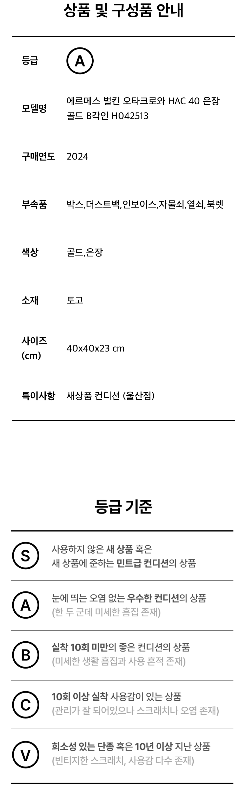 에르메스 벌킨 오타크로와 HAC 40 은장 골드 H042513