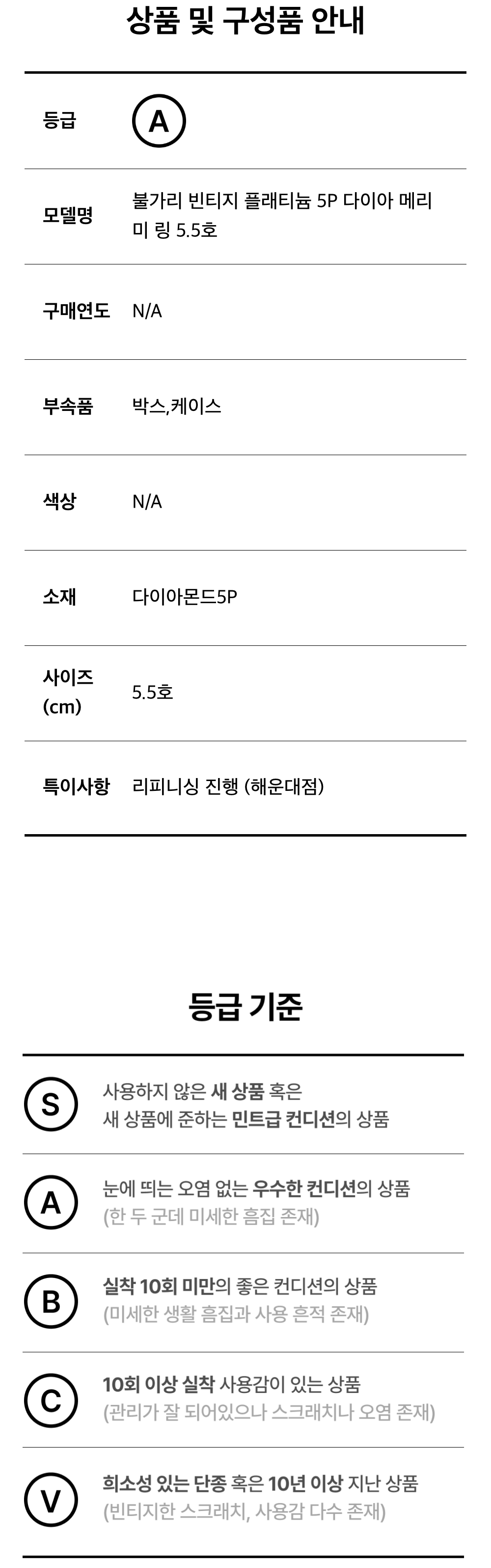 불가리 빈티지 플래티늄 5P 다이아 메리미 링 5.5호