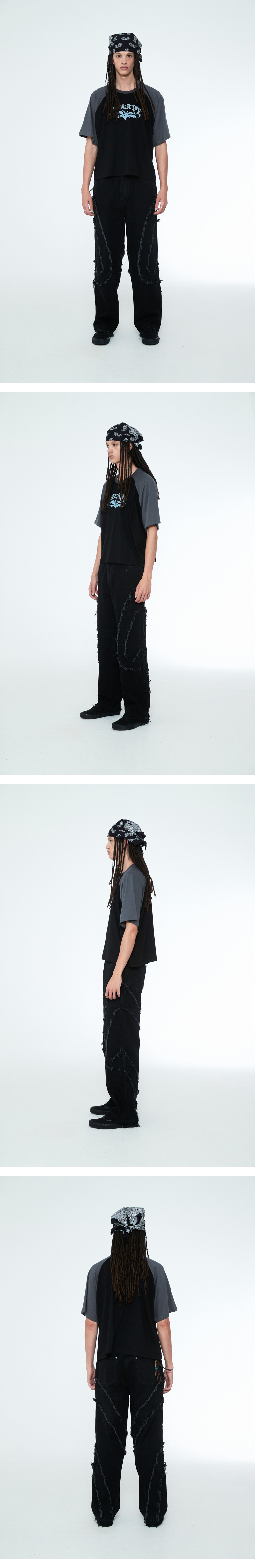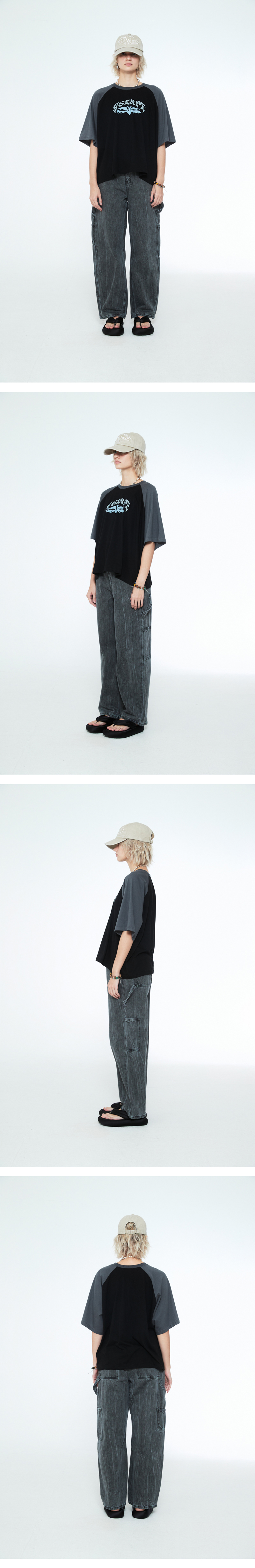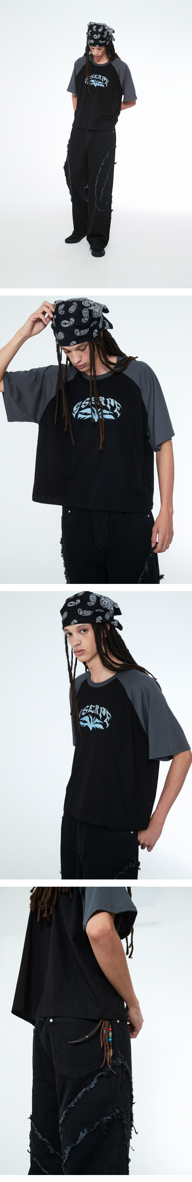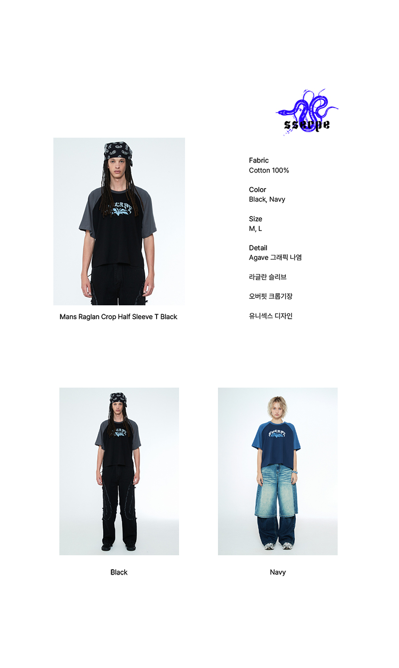 Agave 그래픽 나염이 포인트인 라글란 반팔티셔츠입니다. 오버핏에 크롭기장으로 유니섹스 디자인입니다.
