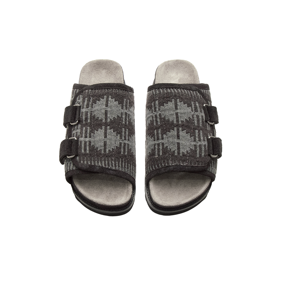 *본 제품은 예약주문 제품으로, 6/28(토) 15:00 ~ 7/1(화) 18:00까지 접수를 진행합니다. *주문 순서에 따라 발송까지 7~8주 소요됩니다. *8/13(수) ~ 8/18(월)까지 발송 예정 1011 ethnic jumbo slippers 1011 협업 컬렉션, 1011 갤러리와 협업으로 새롭게 해석한 점보 슬리퍼. 전면 패턴을 에스닉 패턴으로 디자인했으며, 워싱 가공하여 빈티지한 무드를 완성했습니다. 슬라이더 슈즈를 기반으로 더블 형태 덮개 형식으로 해석한 슬리퍼로, 사이드 벨크로 스트랩은 스웨이드 소재로 마감했습니다. *천연가죽 사용하는 제품으로, 제품에 맞춰 창을 갈아 만드는 공정 특성상 미세한 긁힘이나 찍힘이 있을 수 있습니다. *본 제품의 경우, 발등 플랩 조절을 통해 본연의 편안한 착화감으로 착용해주실 수 있습니다. 발등플랩(덮개)의 밸크로를 해제하여 전체 오픈하신 뒤, 발목 모양에 맞춰 덮개를 다시 닫아주시기 바랍니다. *모델: 170 후반 / 마른 체형, 3사이즈 착용