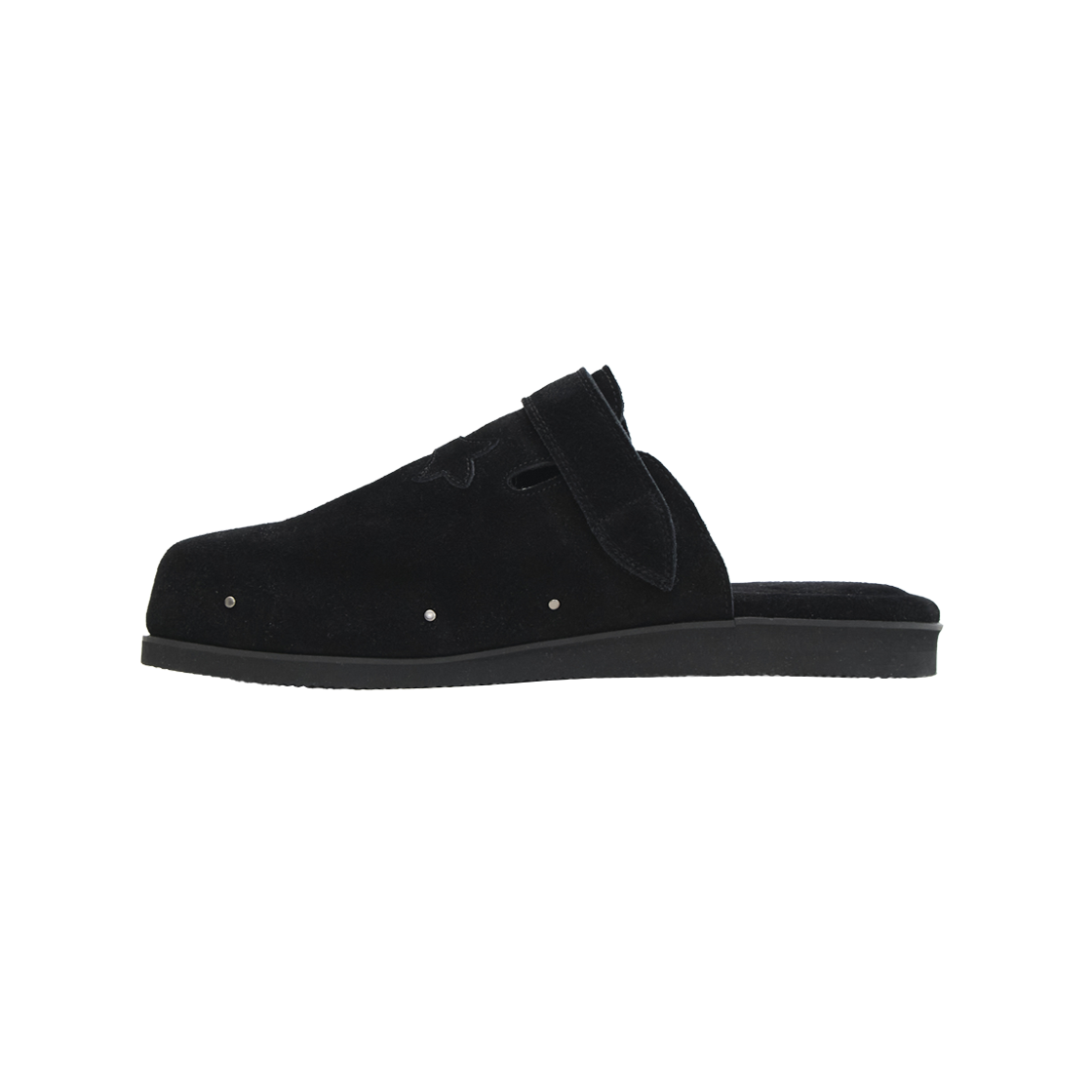 *본 제품은 예약주문 제품으로, 9/6(토) 15:00 ~ 9/13(토) 19:00까지 접수를 진행합니다. *주문 순서에 따라 발송까지 5~6주 소요됩니다. *10/13(월) ~ 10/15(수)까지 발송 예정 1011 rivet mule 1011 협업 컬렉션, 1011 갤러리와 협업하여 선보이는 새로운 형태의 뮬 슈즈. 부드럽게 깔리는 쉐입으로, 협업 팬츠를 비롯하여 25FW 팬츠들과의 조화까지 염두에 두어 디자인한 범용성 높은 무드의 슈즈입니다. 전면에는 플뢰르 패치를 더해 은은한 포인트를 주었으며, 하단부 리벳 디테일로 거칠고 러프한 무드로 완성했습니다. 부드러운 스웨이드 소재로 제작되어 편안하게 착용하실 수 있습니다. *착용 초기에는 가벼운 이염이 발생할 수 있으니 양말과 함께 착용 권장드립니다. *천연 가죽 사용하는 제품으로, 제품에 맞춰 창을 갈아 만드는 공정 특성상 미세한 긁힘이나 찍힘이 있을 수 있습니다. *모델: 170 후반 / 마른 체형, 3사이즈 착용
