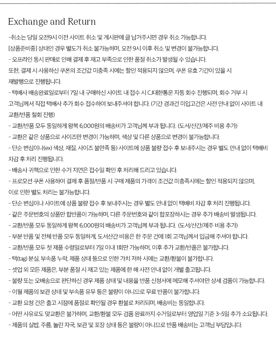 교환 및 반품 안내