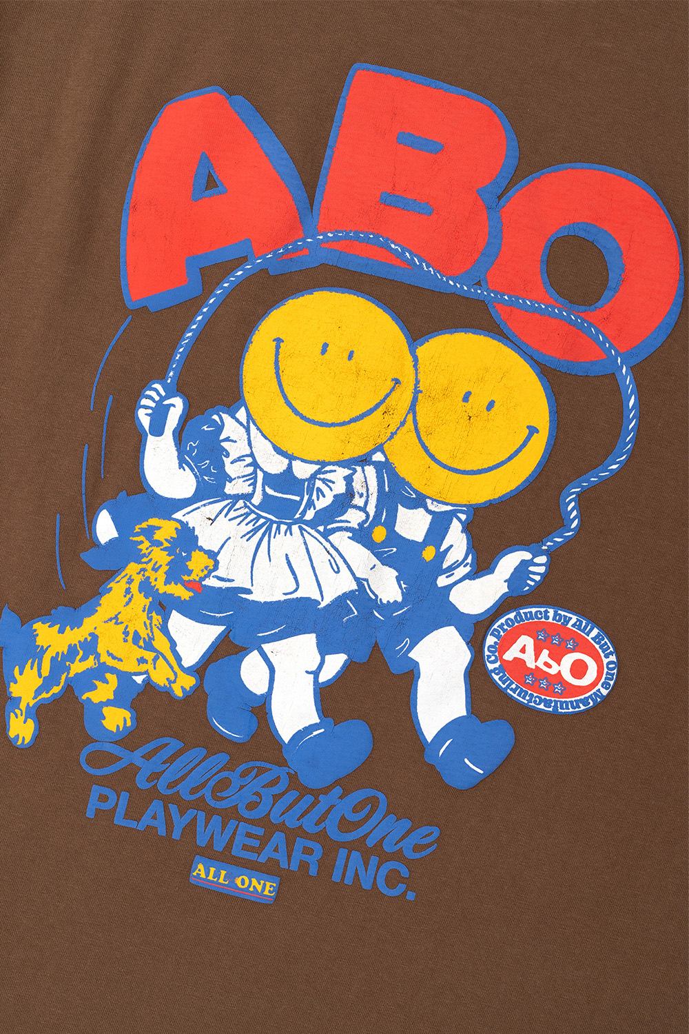 * 줄넘기를 하는 스마일 캐릭터가 프린트 티셔츠 * 부풀어 오른듯한 퍼프 프린트 사양 * 빈티지한 워싱 가공과 데미지 디테일 * 그런지한 분위기 연출 * 싱글 스티치 봉제 사양 * Cotton 100% * Made In Korea