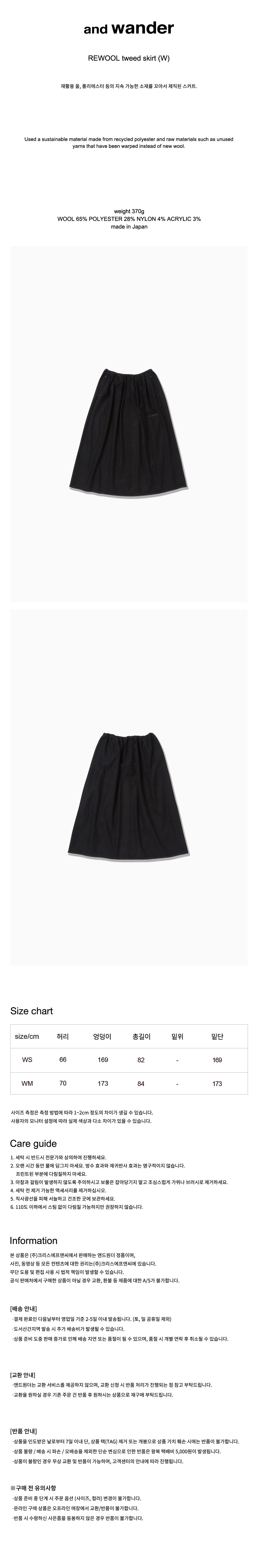 and wander Rewool Tweed Skirt W