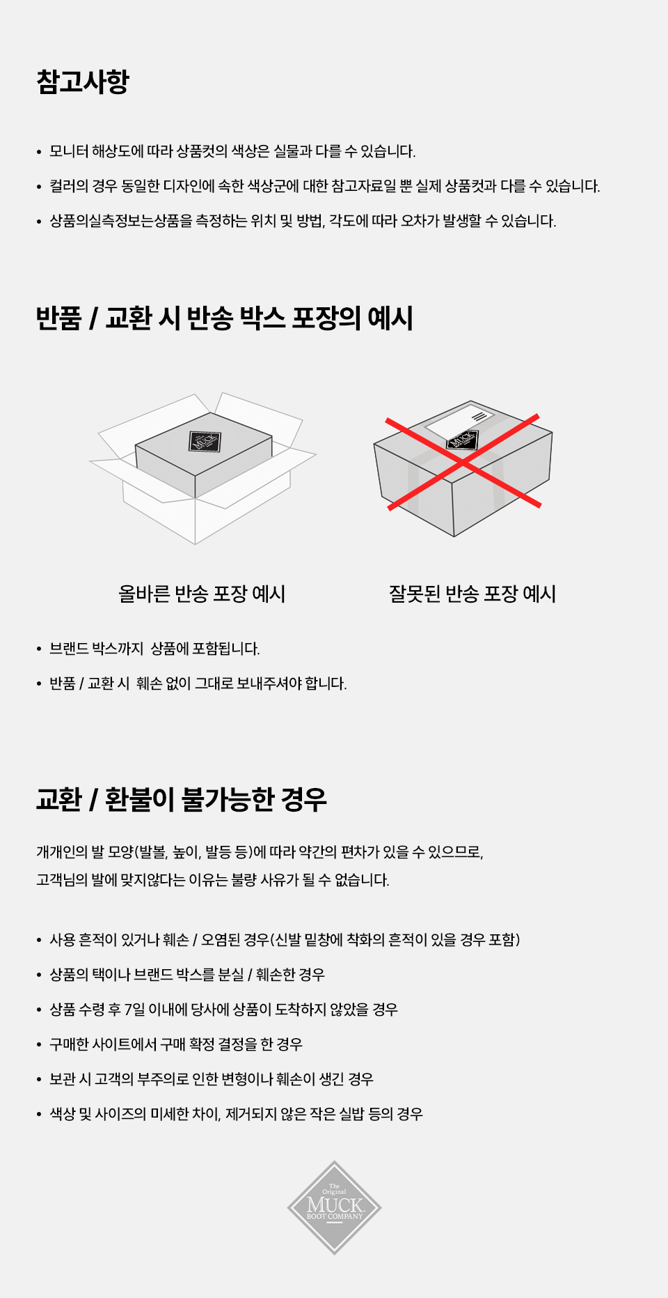 교환 및 반품 안내