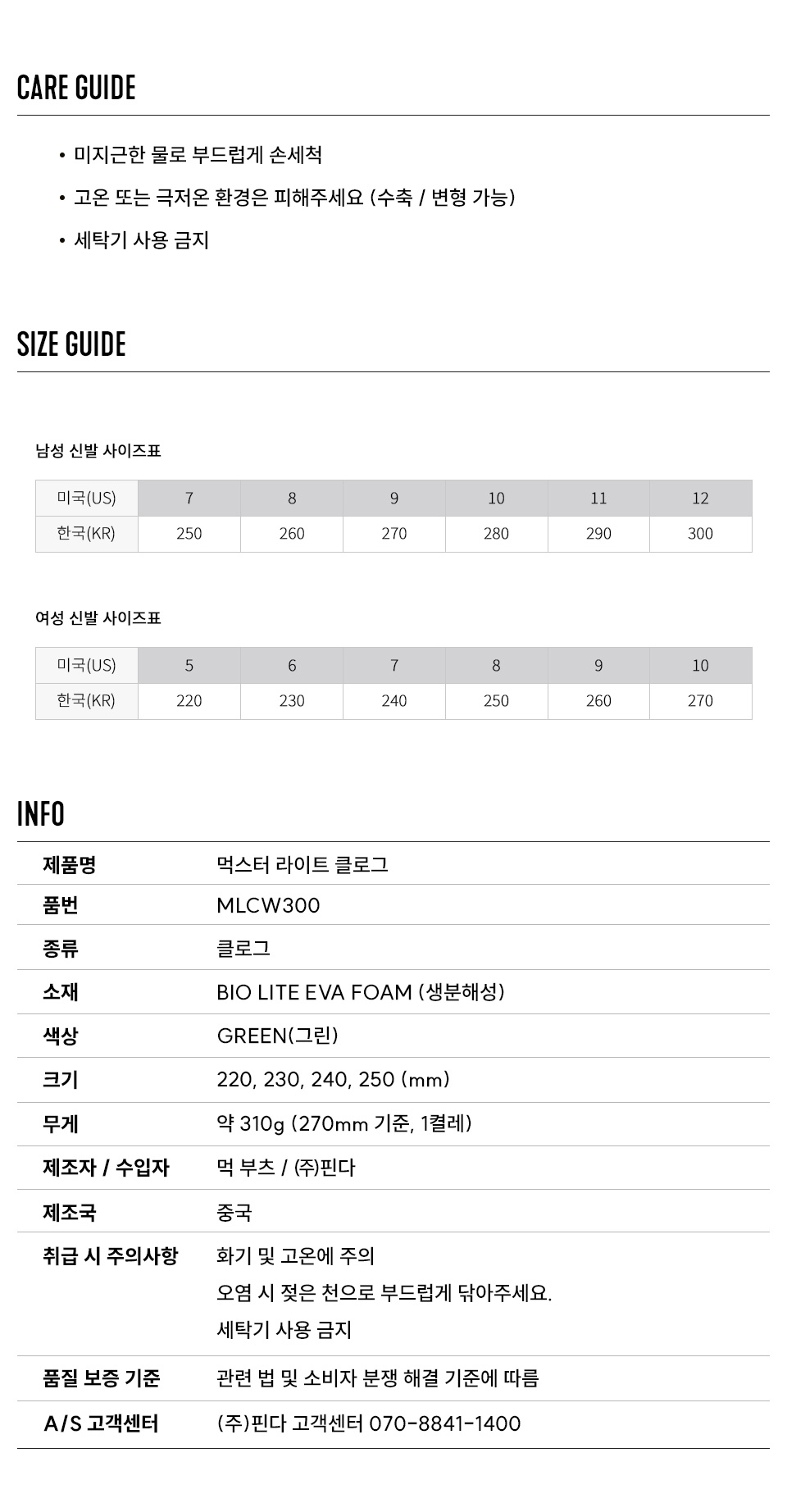 먹부츠 여성 먹스터 라이트 클로그 그린