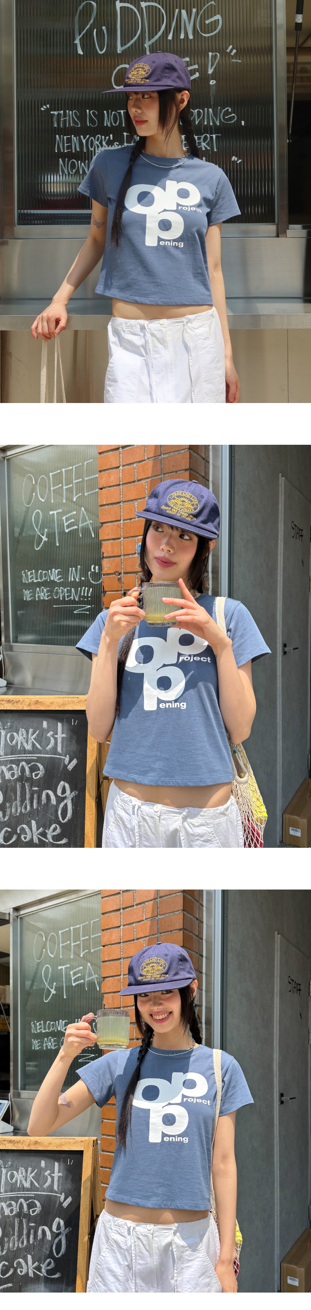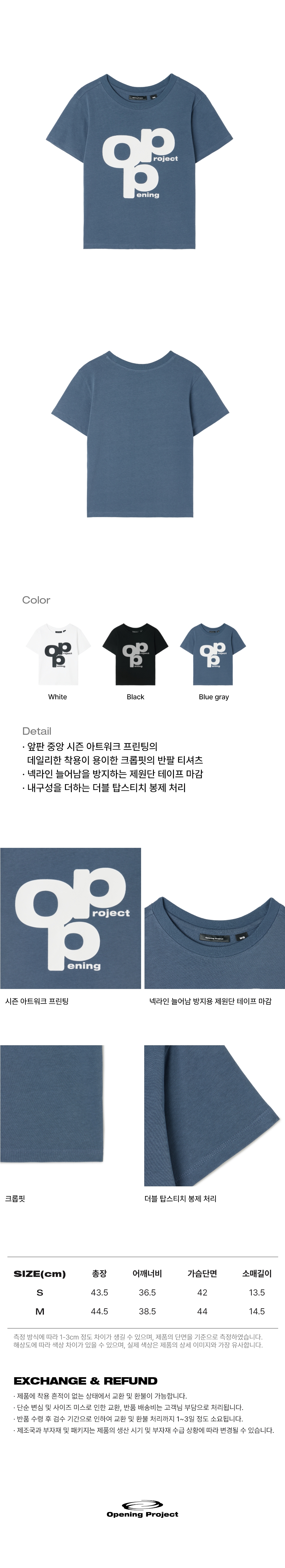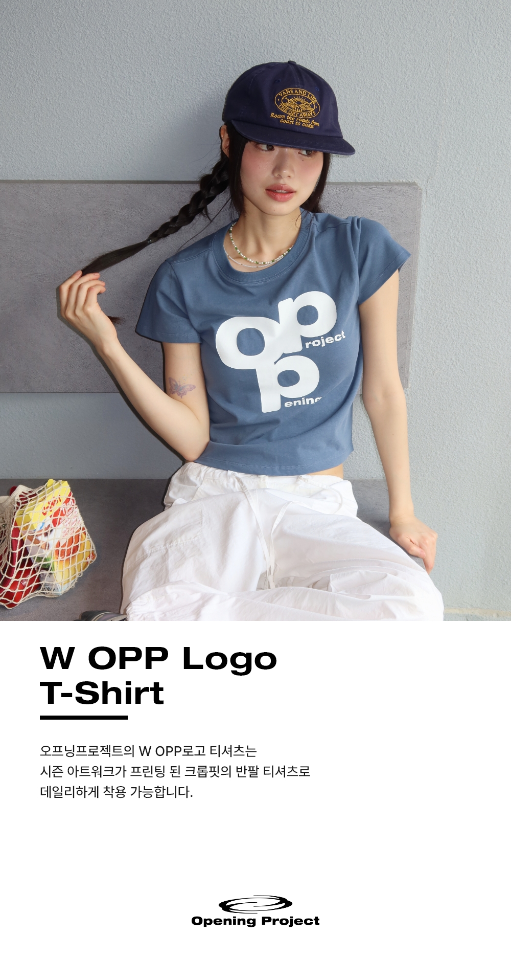 오프닝프로젝트 W OPP 로고 티셔츠 블루 그레이